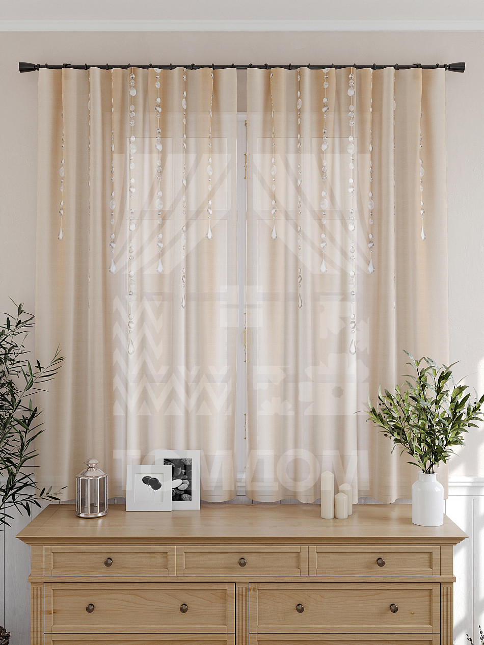 Вуаль – невесомая, практически прозрачная и очень нежная ткань, которая прекрасно смотрится в любом интерьере. Вуалевые шторы изысканны и элегантны как соло, так и в составе шторных ансамблей. Такие гардины придают окну воздушность, легко драпируются, мягко преломляют солнечные лучи и вносят изящество в оформление комнаты. Благодаря широкому ассортименту можно выбрать однотонные вуалевые шторы, либо с орнаментом, с аппликацией или вышивкой, в любом случае ваш выбор будет смотреться красиво и современно.