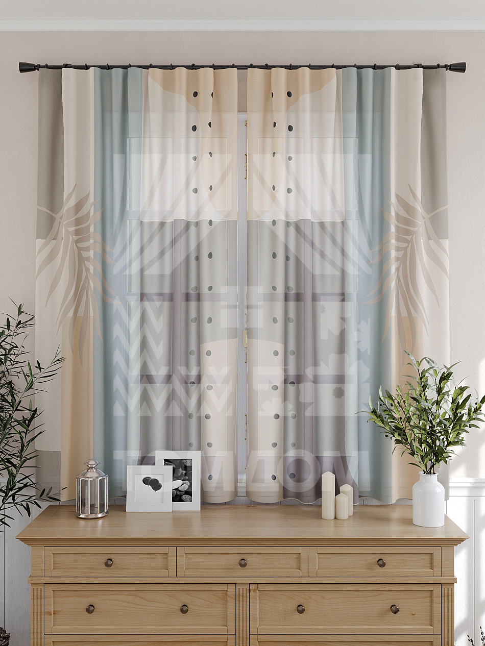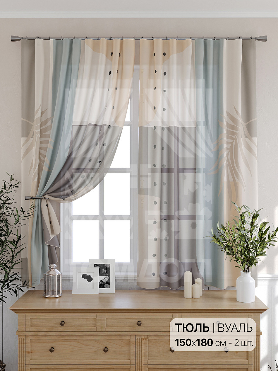 Тюль 2 шт. Подхват - доп.услуга. Легкая основа (вуаль) оформлена принтом. Вуаль с матовой полупрозрачной текстурой. Отличается особым шиком, идеально подходит для создания воздушных штор. Придает ощущение свежести, хорошо пропускает воздух. Ткань неприхотлива в уходе, хорошо стирается без разрушения волокон с течением времени за счет высокого кручения нитей.