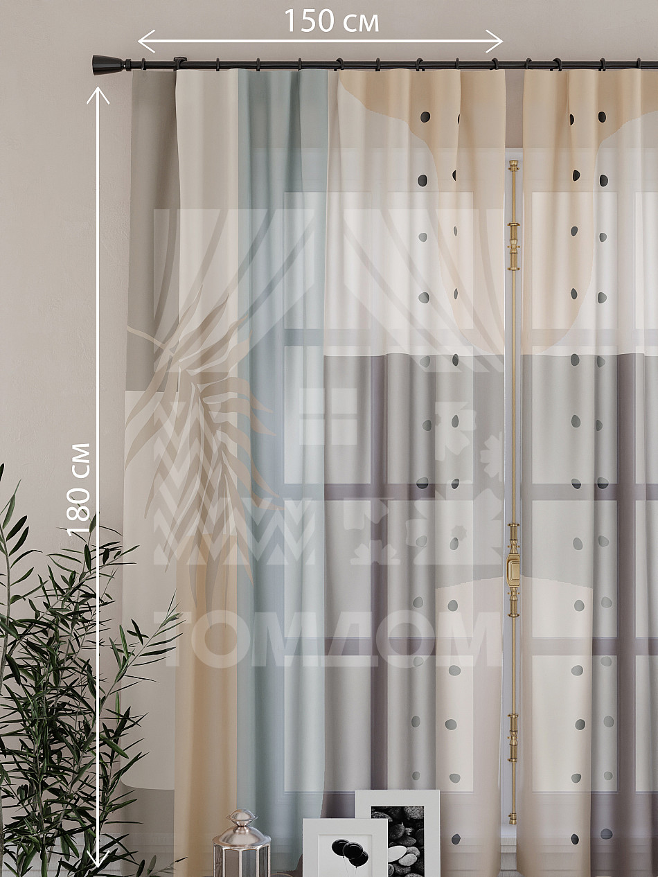 Ширина одного тюля без сборки 150 см, высота 180 см.