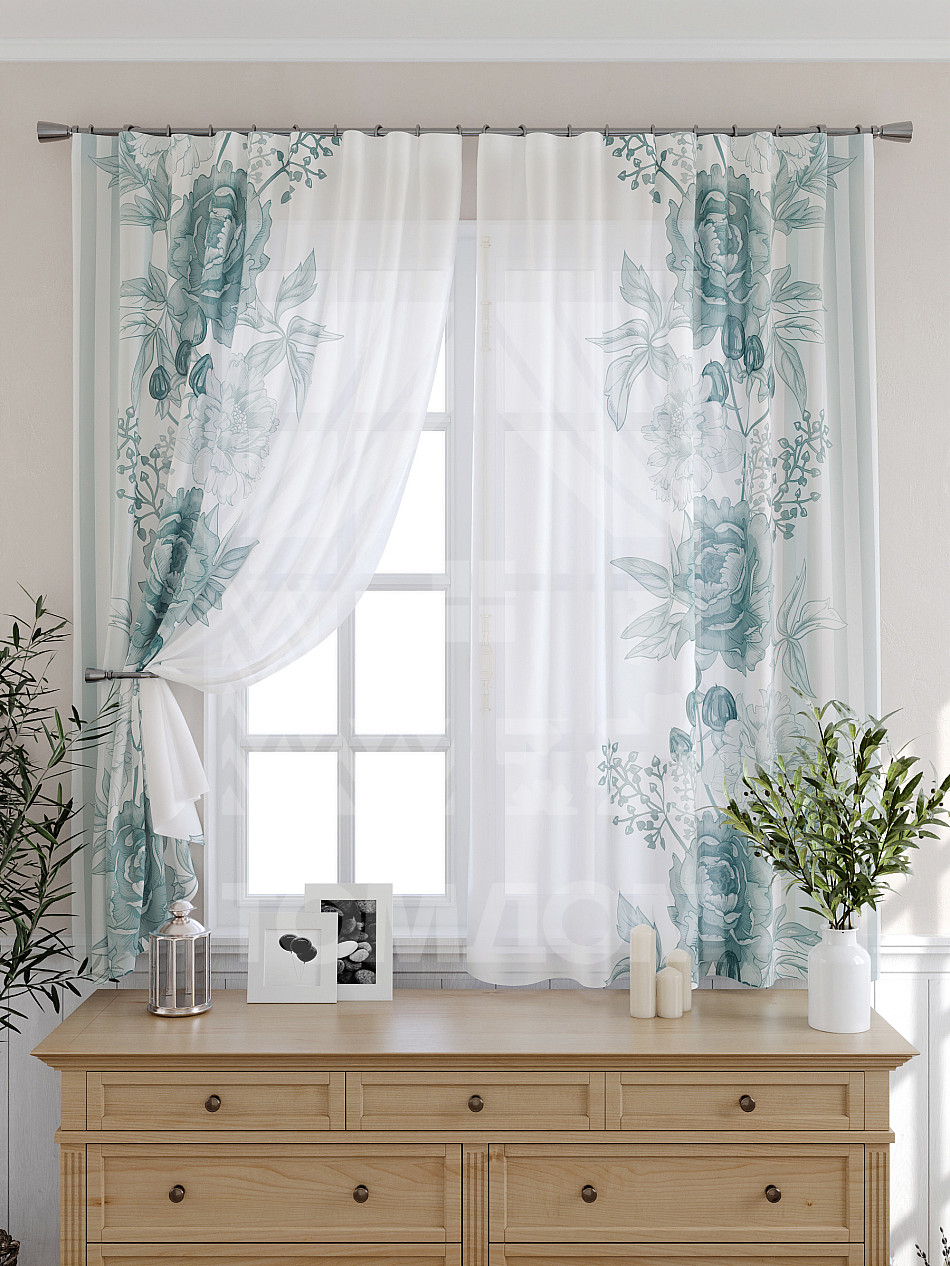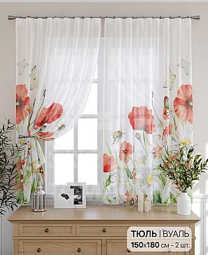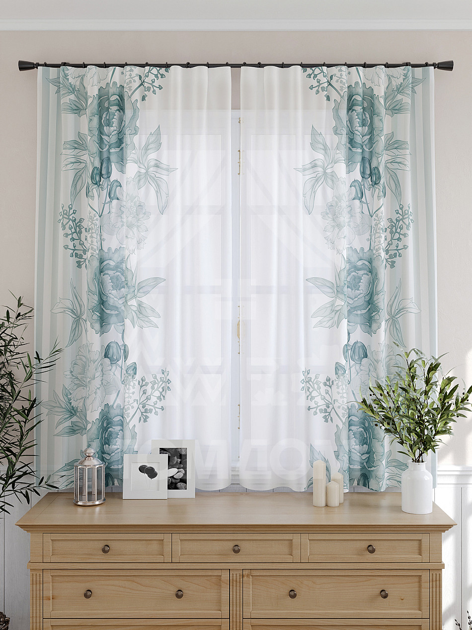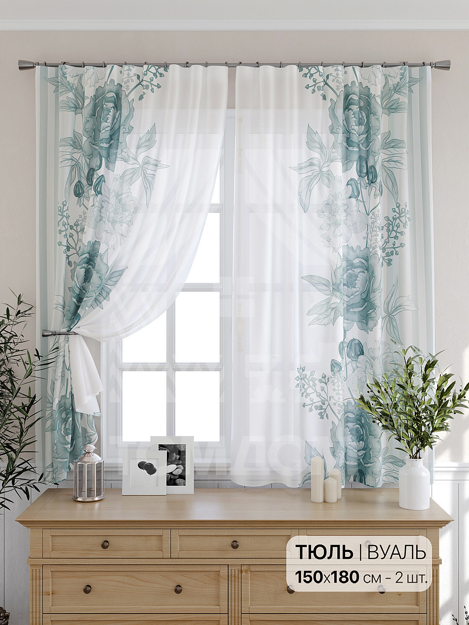Тюль 2 шт. Подхват - доп.услуга. Легкая основа (вуаль) оформлена принтом. Вуаль с матовой полупрозрачной текстурой. Отличается особым шиком, идеально подходит для создания воздушных штор. Придает ощущение свежести, хорошо пропускает воздух. Ткань неприхотлива в уходе, хорошо стирается без разрушения волокон с течением времени за счет высокого кручения нитей.