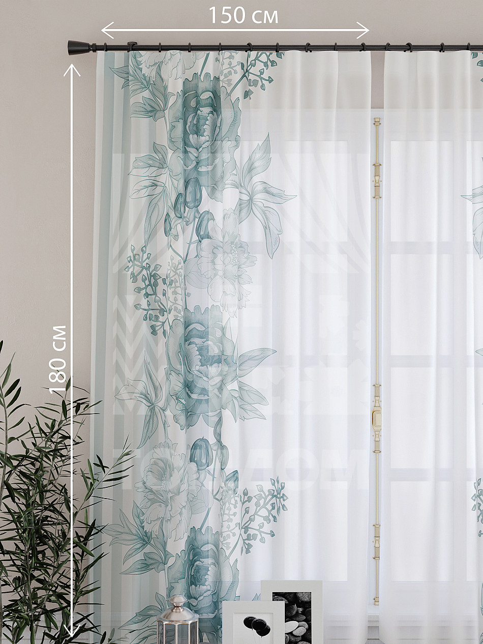Ширина одного тюля без сборки 150 см, высота 180 см.