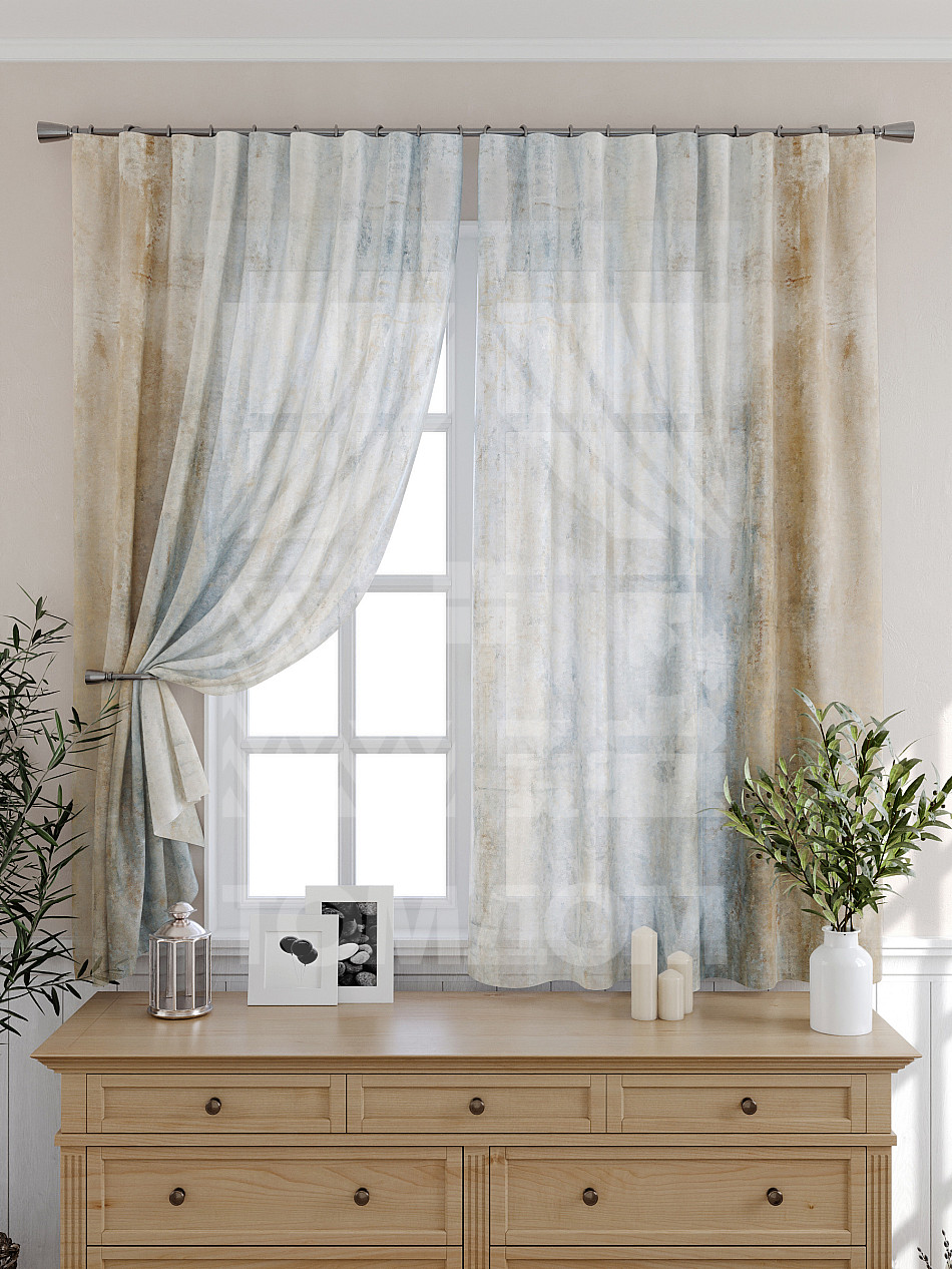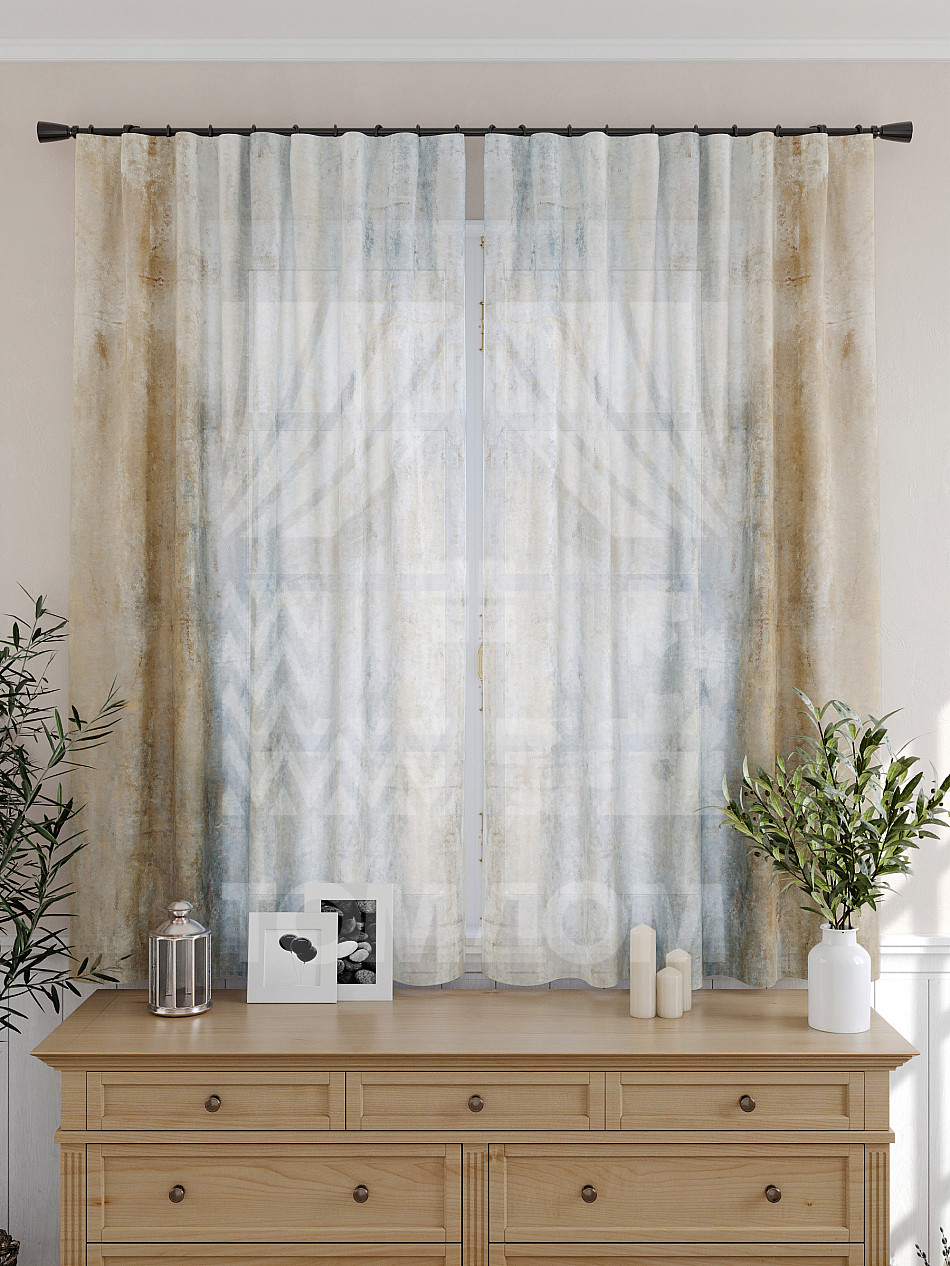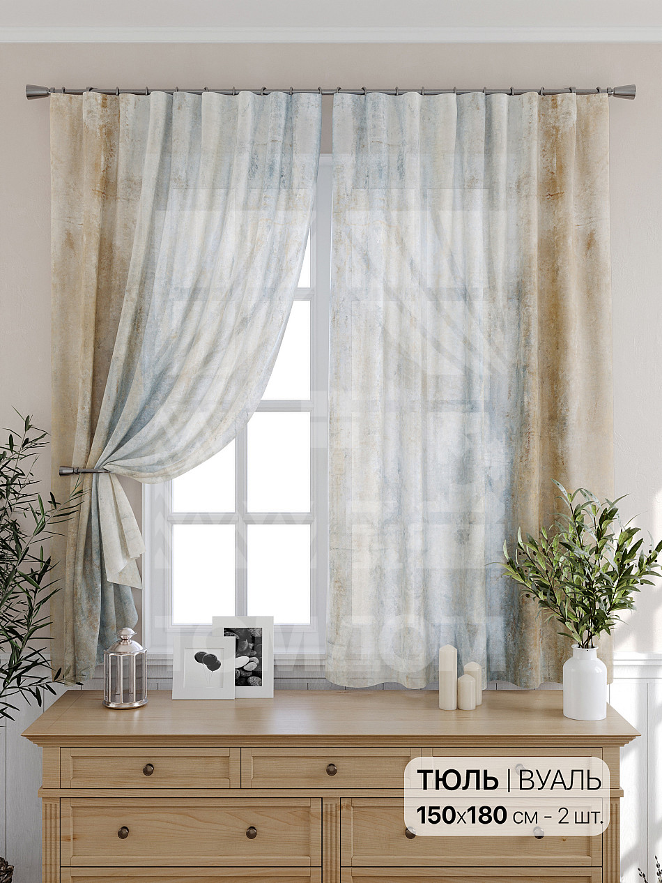 Тюль 2 шт. Подхват - доп.услуга. Легкая основа (вуаль) оформлена принтом. Вуаль с матовой полупрозрачной текстурой. Отличается особым шиком, идеально подходит для создания воздушных штор. Придает ощущение свежести, хорошо пропускает воздух. Ткань неприхотлива в уходе, хорошо стирается без разрушения волокон с течением времени за счет высокого кручения нитей.