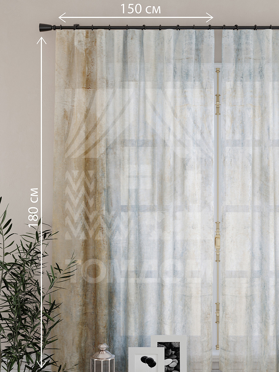 Ширина одного тюля без сборки 150 см, высота 180 см.
