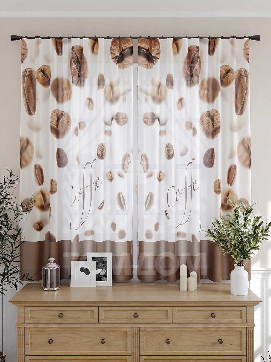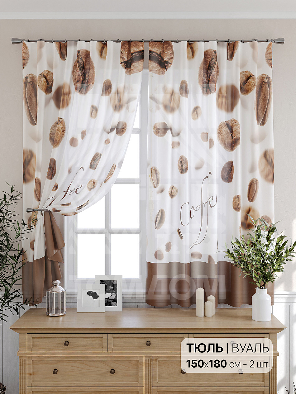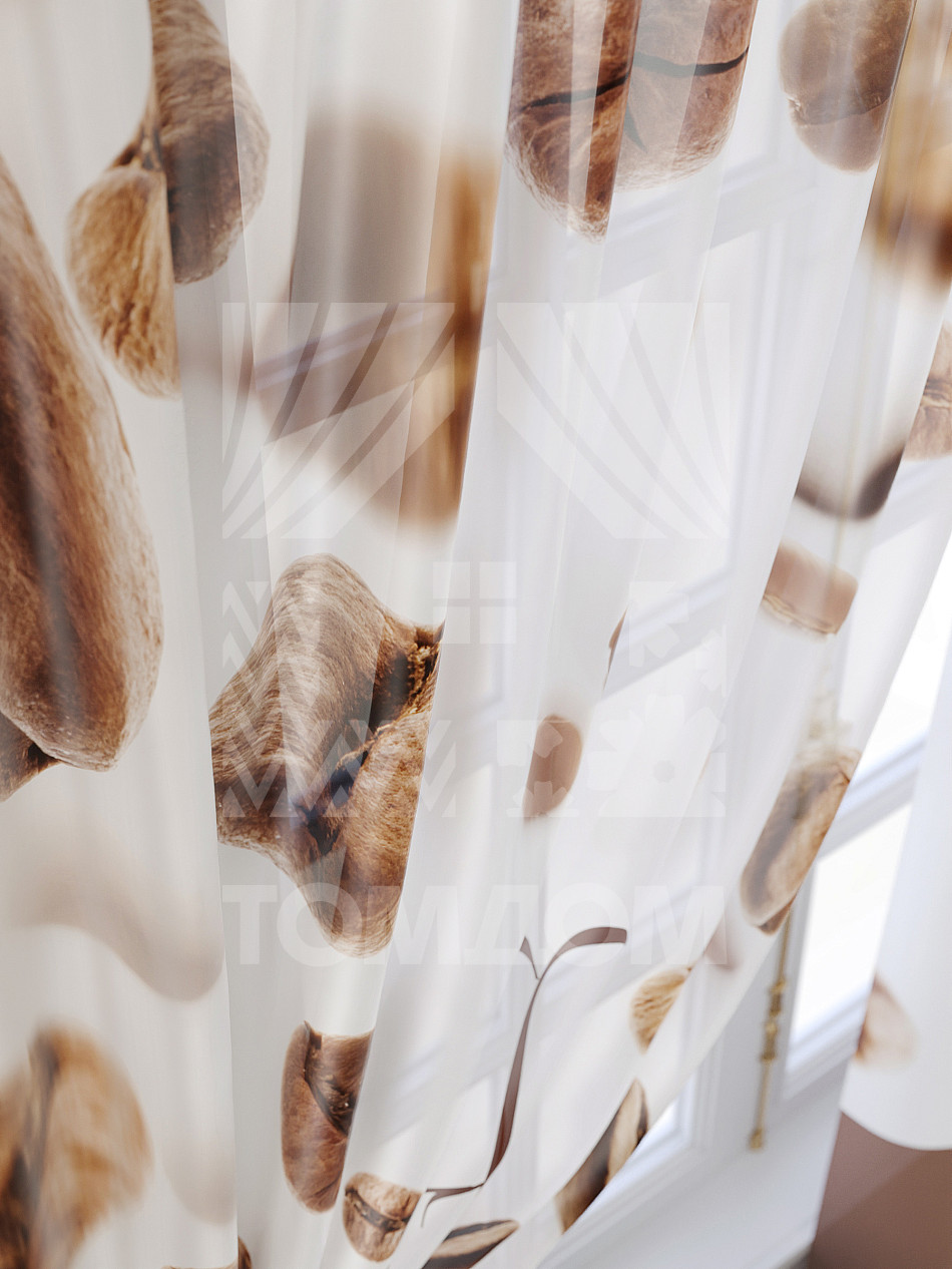 Тюль 2 шт. Подхват - доп.услуга. Легкая основа (вуаль) оформлена принтом. Вуаль с матовой полупрозрачной текстурой. Отличается особым шиком, идеально подходит для создания воздушных штор. Придает ощущение свежести, хорошо пропускает воздух. Ткань неприхотлива в уходе, хорошо стирается без разрушения волокон с течением времени за счет высокого кручения нитей.