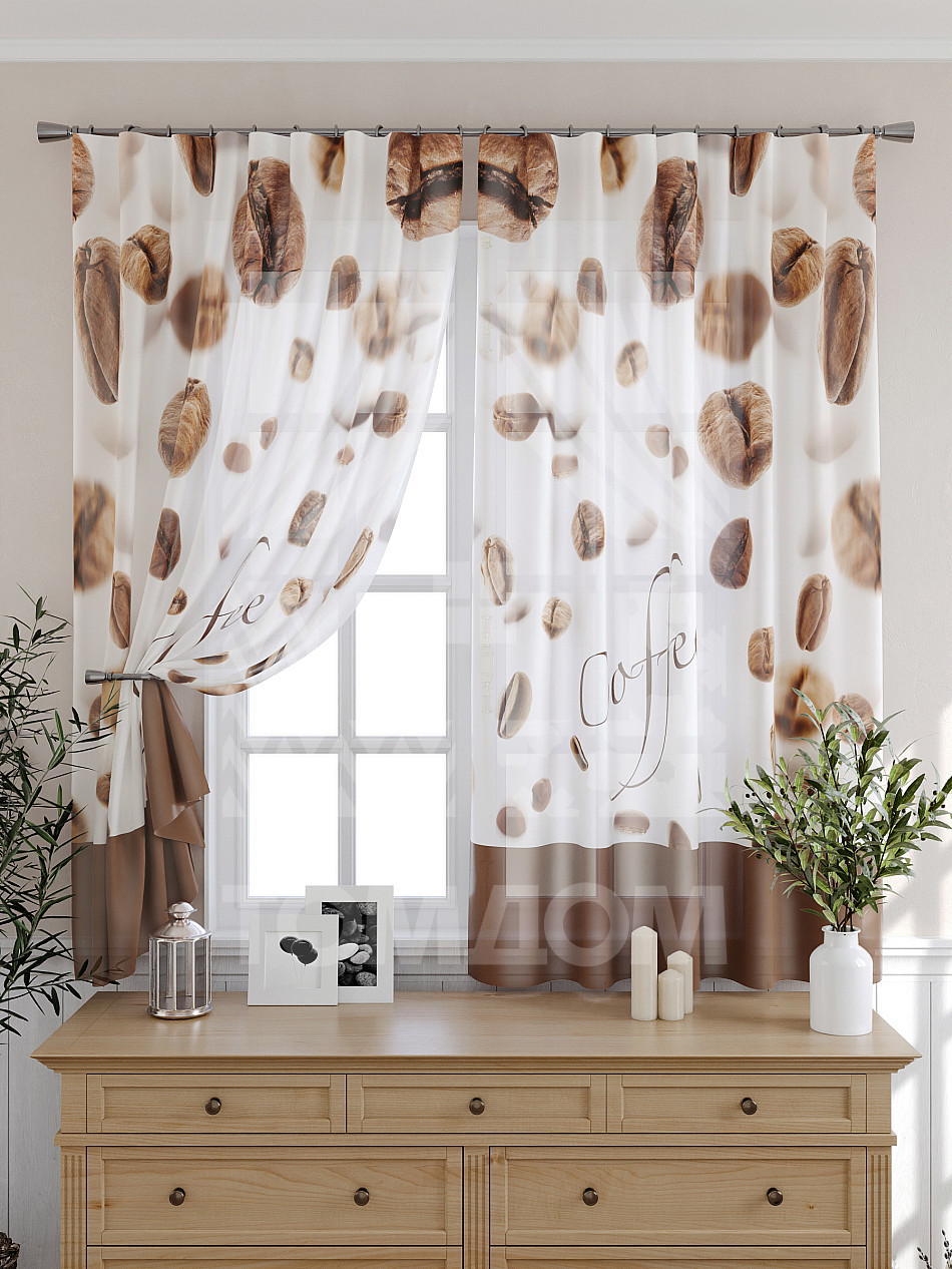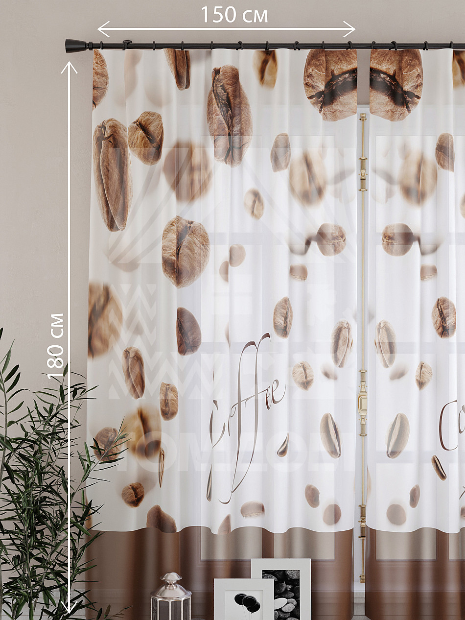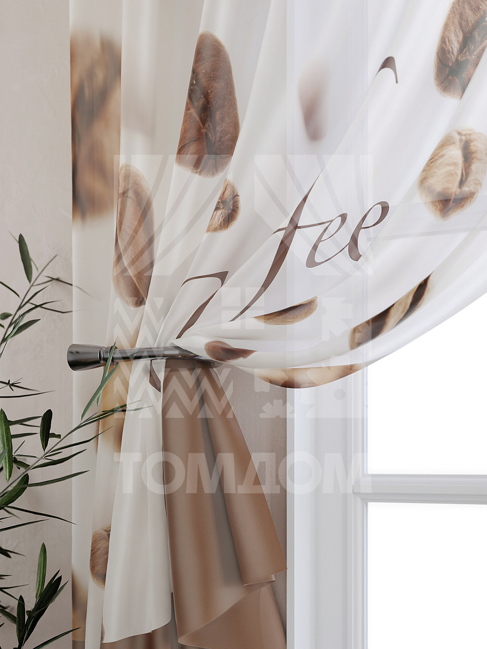 Тюль 2 шт. Подхват - доп.услуга. Легкая основа (вуаль) оформлена принтом. Вуаль с матовой полупрозрачной текстурой. Отличается особым шиком, идеально подходит для создания воздушных штор. Придает ощущение свежести, хорошо пропускает воздух. Ткань неприхотлива в уходе, хорошо стирается без разрушения волокон с течением времени за счет высокого кручения нитей.