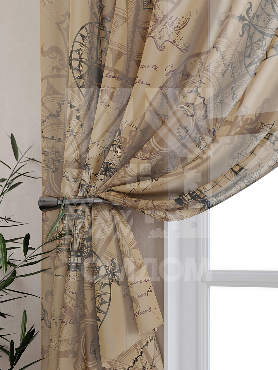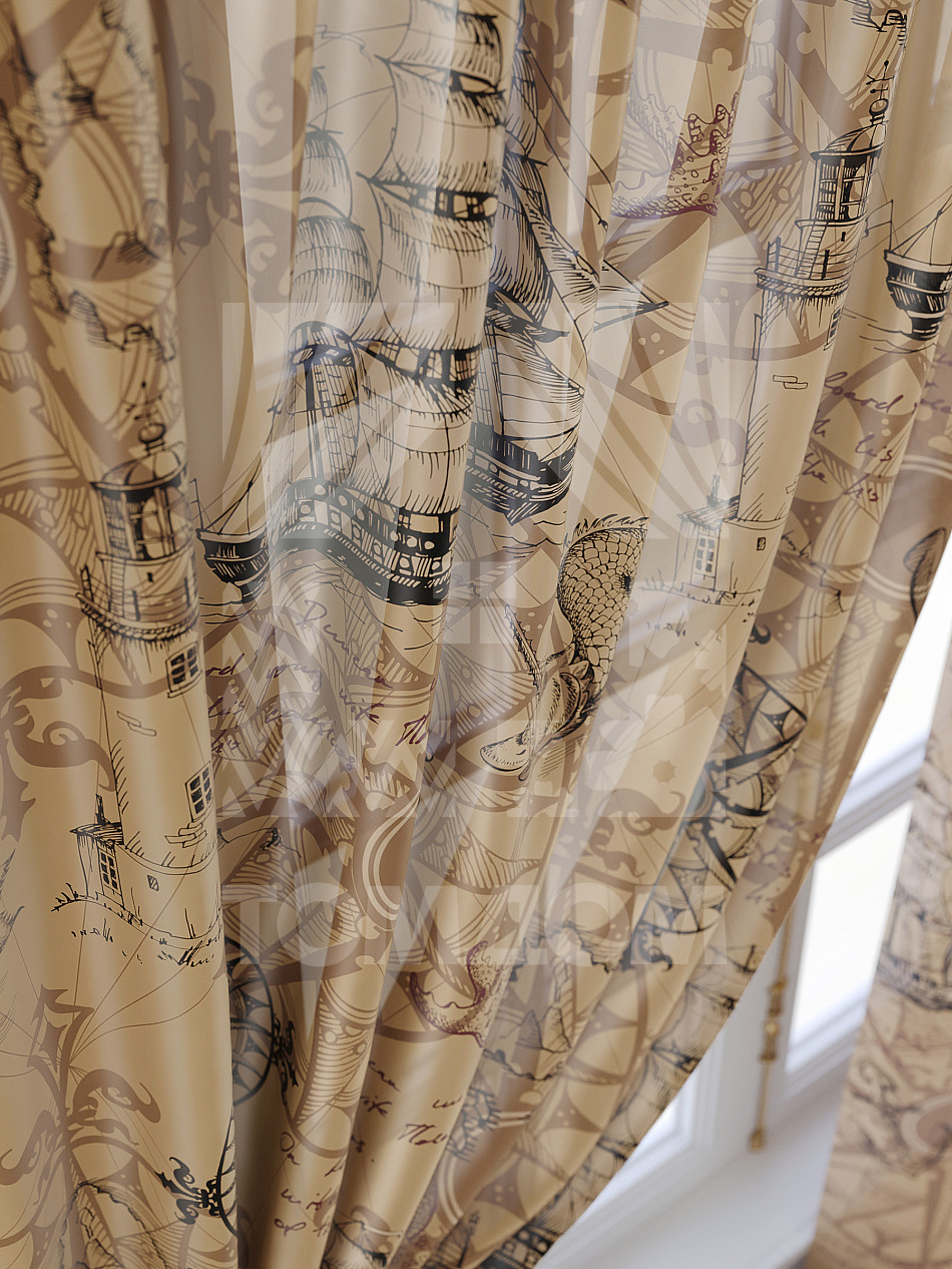 Комбинированные Морские Современный Узоры Фото принт Надписи/БуквыАксессуары для оформления штор: