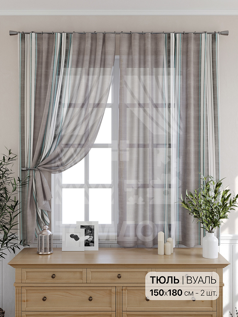 Тюль 2 шт. — 150х180 см. — 150x180 см. Вуаль страна-производитель — Россия.