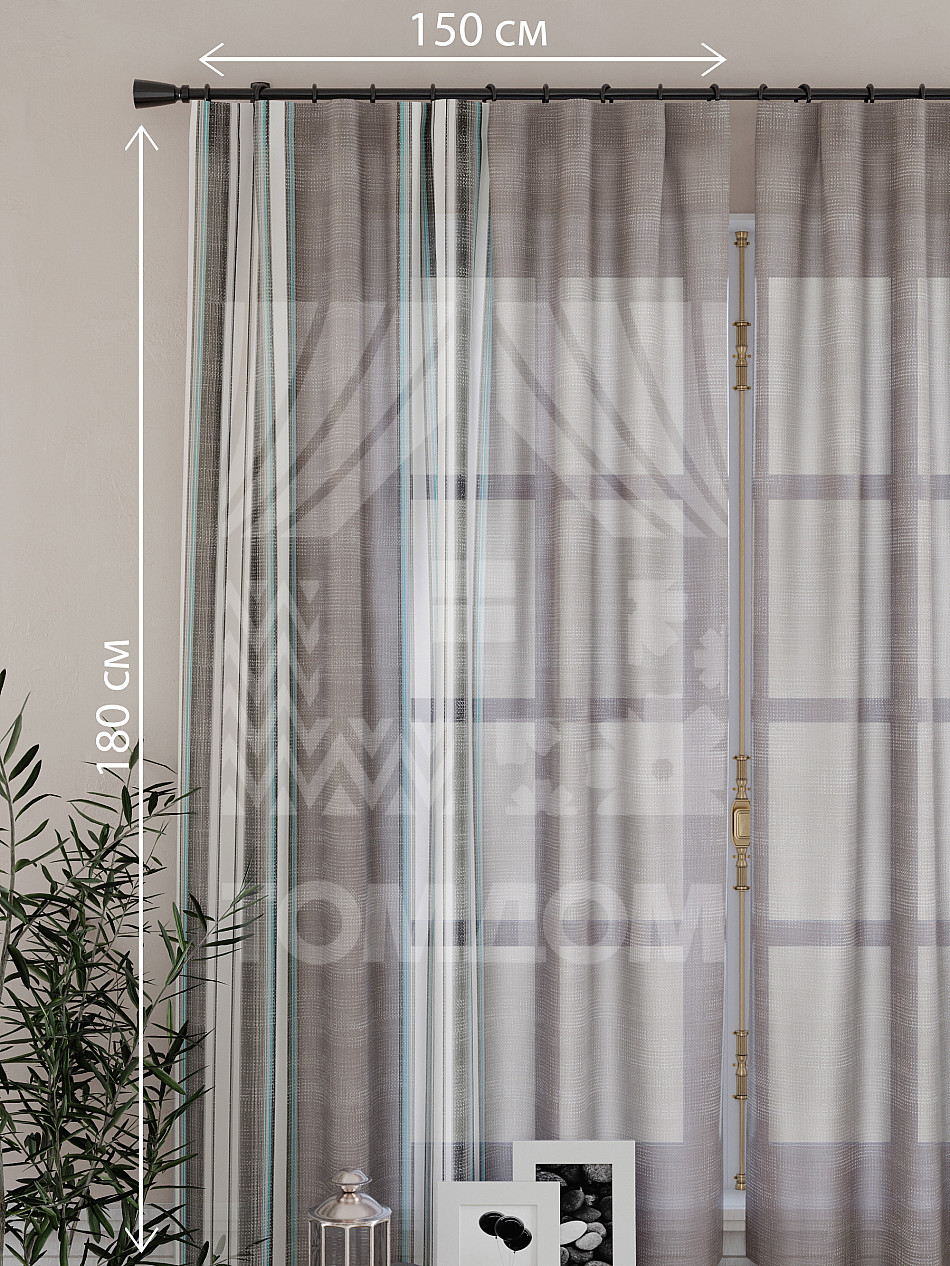 Ширина одного тюля без сборки 150 см, высота 180 см.