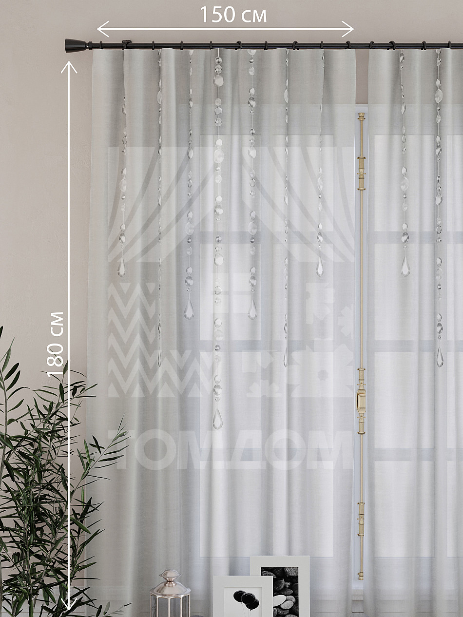 Ширина одного тюля без сборки 150 см, высота 180 см.