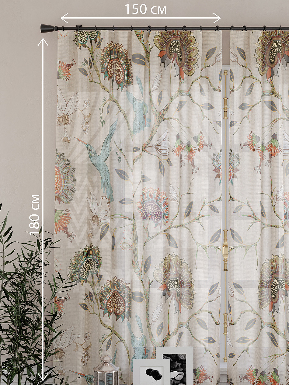 Ширина одного тюля без сборки 150 см, высота 180 см.
