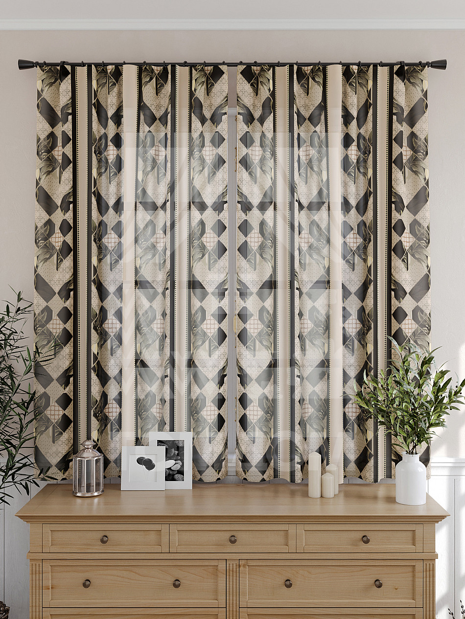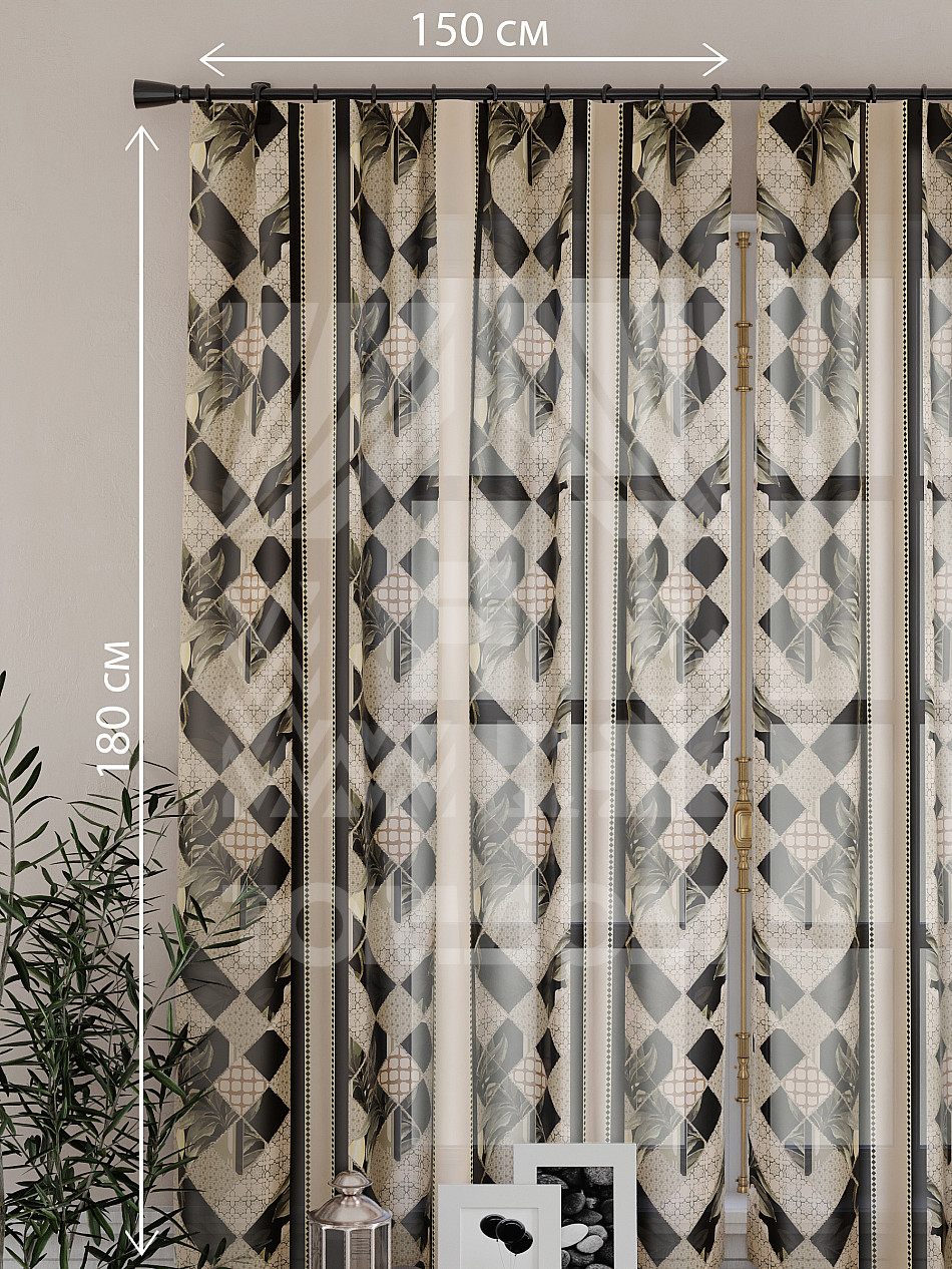 Тюль 2 шт. Подхват - доп.услуга. Легкая основа (вуаль) оформлена принтом. Вуаль с матовой полупрозрачной текстурой. Отличается особым шиком, идеально подходит для создания воздушных штор. Придает ощущение свежести, хорошо пропускает воздух. Ткань неприхотлива в уходе, хорошо стирается без разрушения волокон с течением времени за счет высокого кручения нитей.