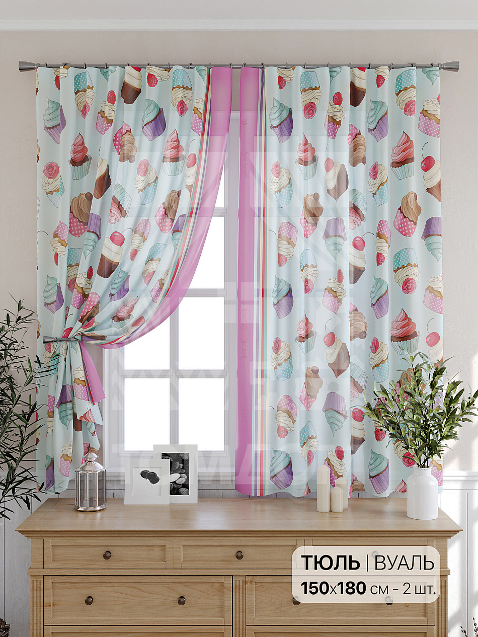 Тюль 2 шт. Подхват - доп.услуга. Легкая основа (вуаль) оформлена принтом. Вуаль с матовой полупрозрачной текстурой. Отличается особым шиком, идеально подходит для создания воздушных штор. Придает ощущение свежести, хорошо пропускает воздух. Ткань неприхотлива в уходе, хорошо стирается без разрушения волокон с течением времени за счет высокого кручения нитей.