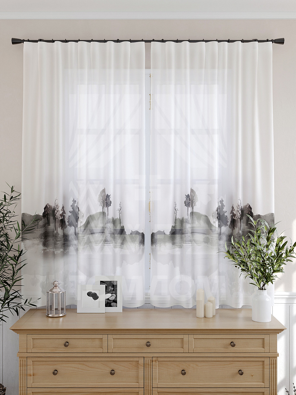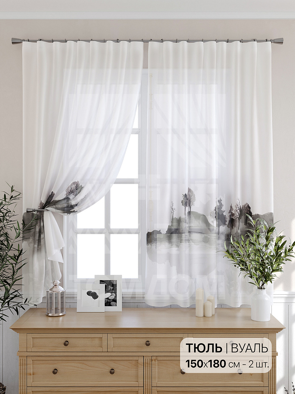 Тюль 2 шт. Подхват - доп.услуга. Легкая основа (вуаль) оформлена принтом. Вуаль с матовой полупрозрачной текстурой. Отличается особым шиком, идеально подходит для создания воздушных штор. Придает ощущение свежести, хорошо пропускает воздух. Ткань неприхотлива в уходе, хорошо стирается без разрушения волокон с течением времени за счет высокого кручения нитей.