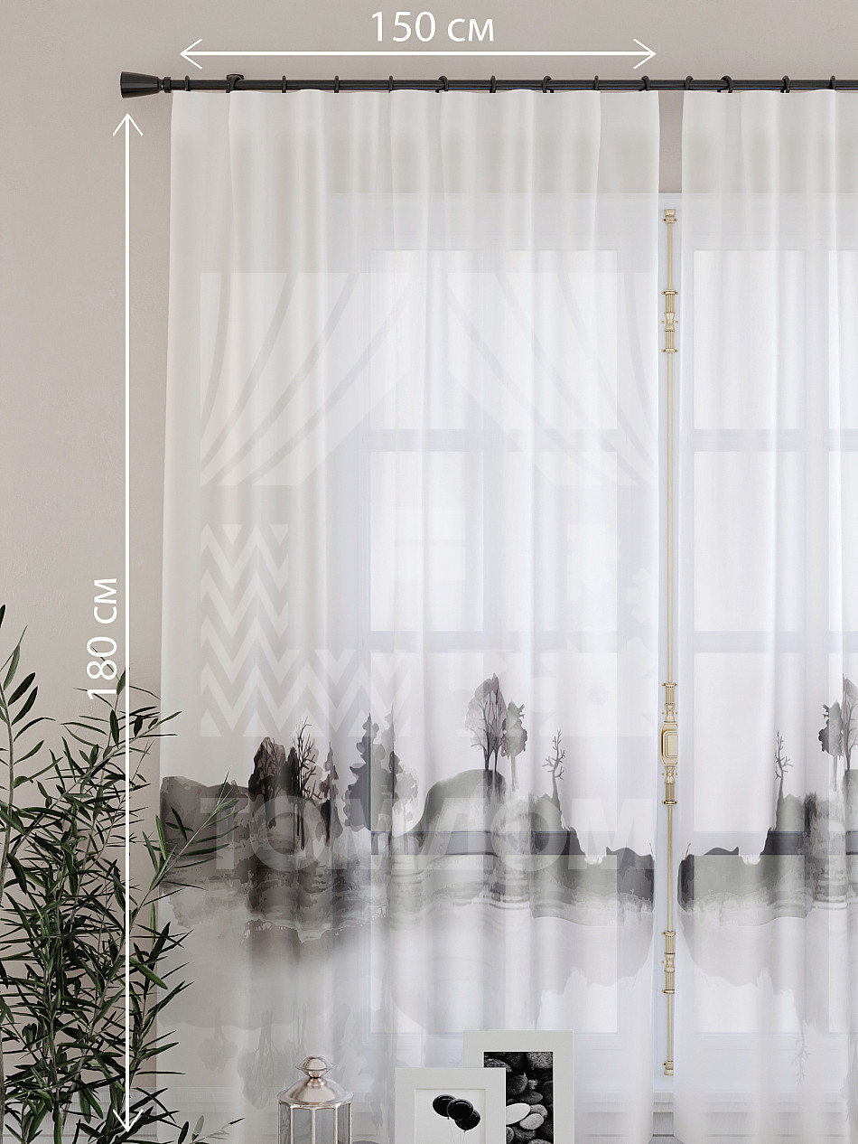 Ширина одного тюля без сборки 150 см, высота 180 см.