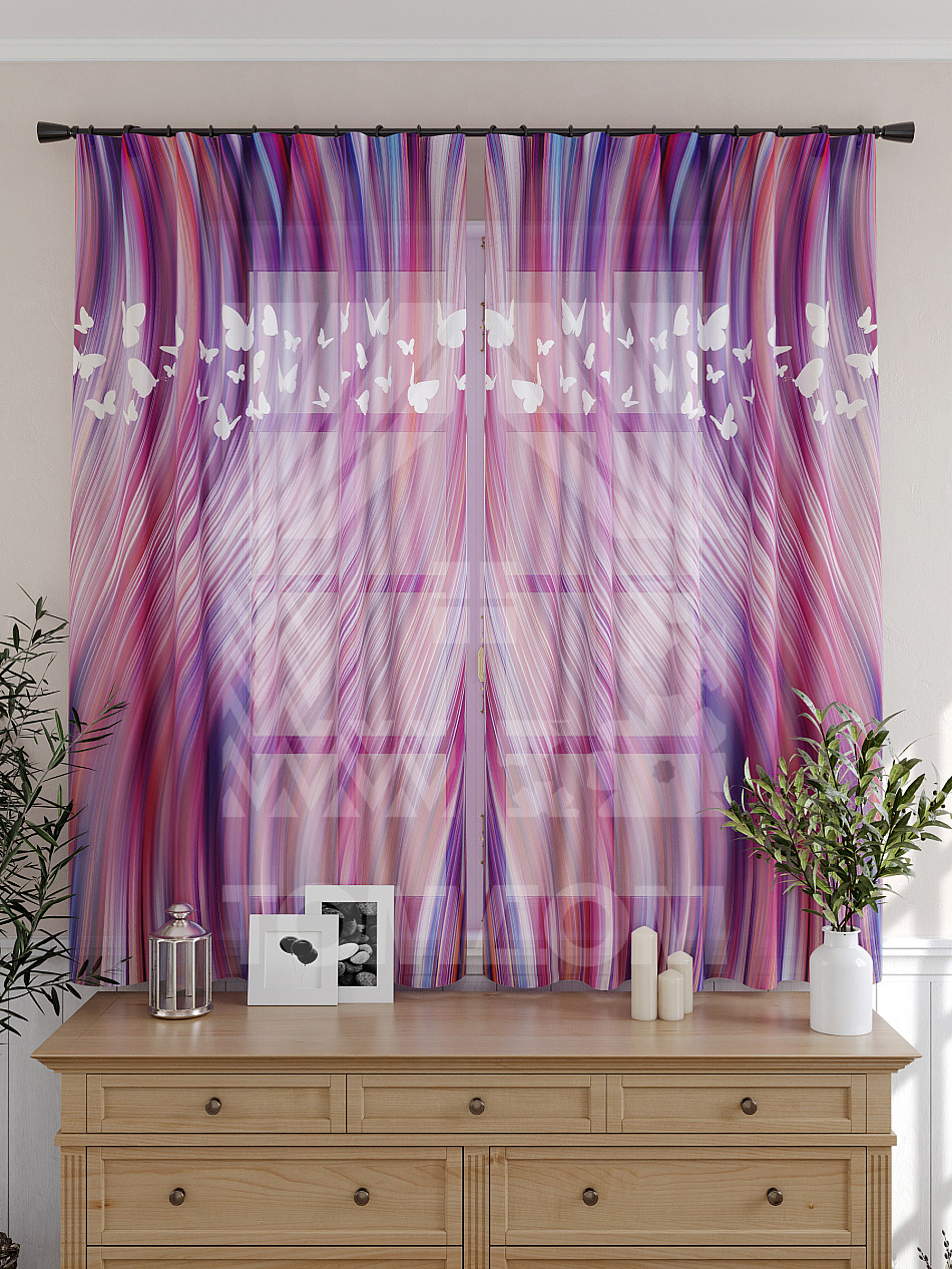 Тюль 2 шт. Подхват - доп.услуга. Легкая основа (вуаль) оформлена принтом. Вуаль с матовой полупрозрачной текстурой. Отличается особым шиком, идеально подходит для создания воздушных штор. Придает ощущение свежести, хорошо пропускает воздух. Ткань неприхотлива в уходе, хорошо стирается без разрушения волокон с течением времени за счет высокого кручения нитей.