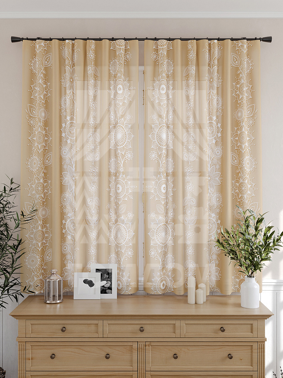 Тюль 2 шт. Подхват - доп.услуга. Легкая основа (вуаль) оформлена принтом. Вуаль с матовой полупрозрачной текстурой. Отличается особым шиком, идеально подходит для создания воздушных штор. Придает ощущение свежести, хорошо пропускает воздух. Ткань неприхотлива в уходе, хорошо стирается без разрушения волокон с течением времени за счет высокого кручения нитей.