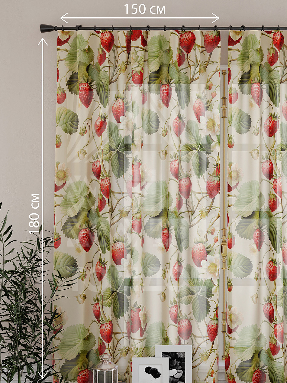 Ширина одного тюля без сборки 150 см, высота 180 см.