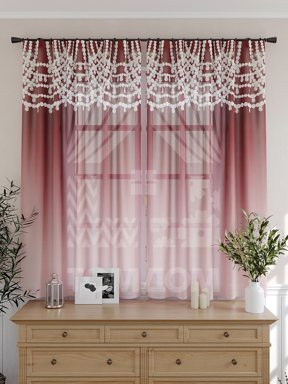 Тюль 2 шт. Подхват - доп.услуга. Легкая основа (вуаль) оформлена принтом. Вуаль с матовой полупрозрачной текстурой. Отличается особым шиком, идеально подходит для создания воздушных штор. Придает ощущение свежести, хорошо пропускает воздух. Ткань неприхотлива в уходе, хорошо стирается без разрушения волокон с течением времени за счет высокого кручения нитей.