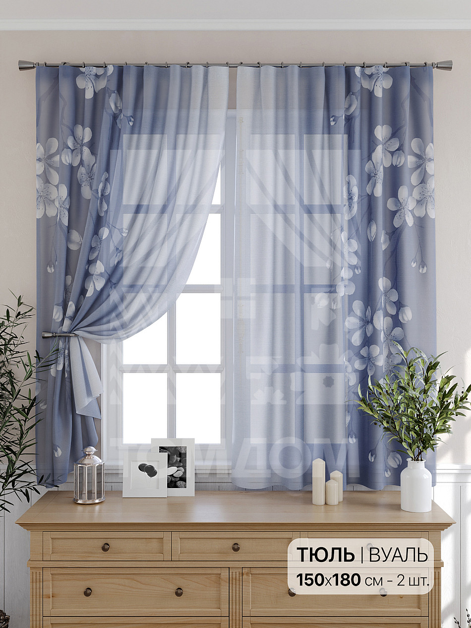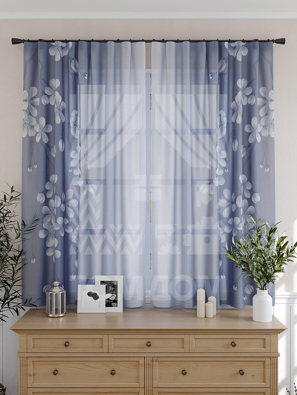 Тюль 2 шт. Подхват - доп.услуга. Легкая основа (вуаль) оформлена принтом. Вуаль с матовой полупрозрачной текстурой. Отличается особым шиком, идеально подходит для создания воздушных штор. Придает ощущение свежести, хорошо пропускает воздух. Ткань неприхотлива в уходе, хорошо стирается без разрушения волокон с течением времени за счет высокого кручения нитей.