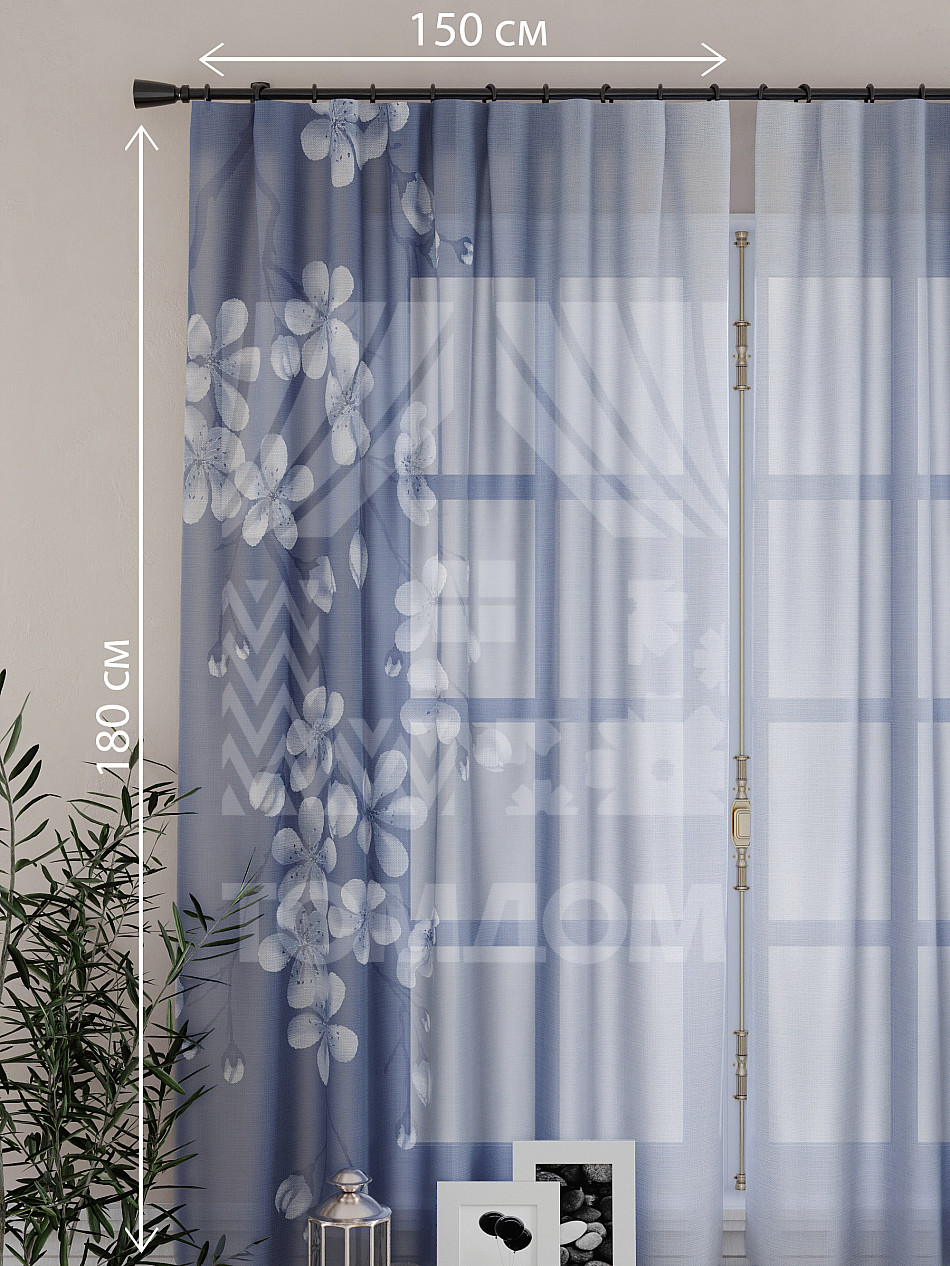 Ширина одного тюля без сборки 150 см, высота 180 см.