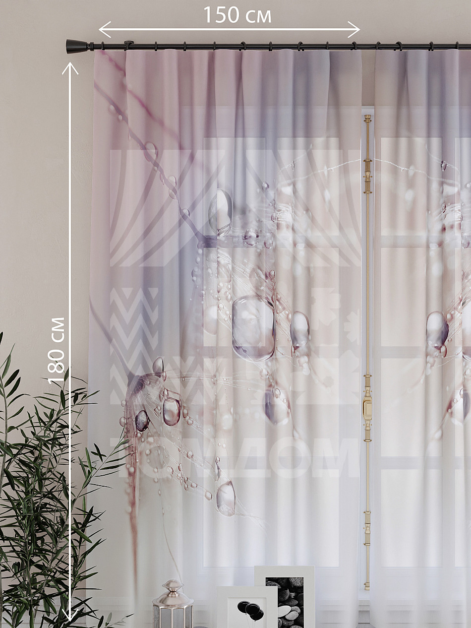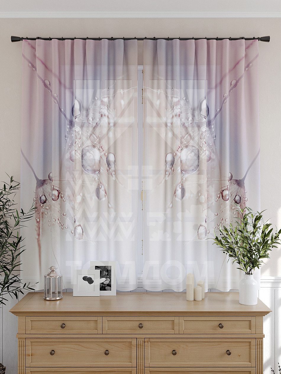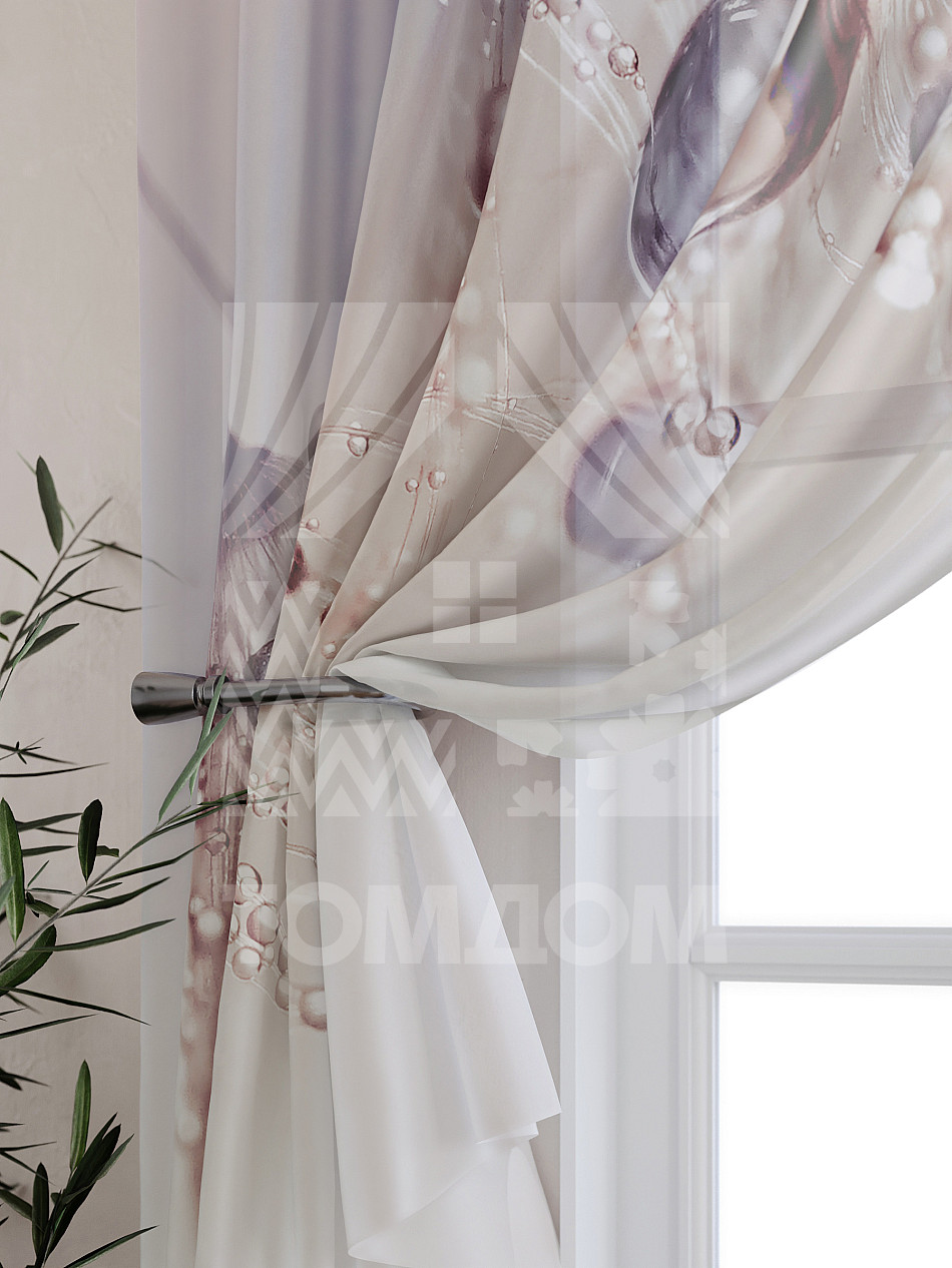 Тюль 2 шт. Подхват - доп.услуга. Легкая основа (вуаль) оформлена принтом. Вуаль с матовой полупрозрачной текстурой. Отличается особым шиком, идеально подходит для создания воздушных штор. Придает ощущение свежести, хорошо пропускает воздух. Ткань неприхотлива в уходе, хорошо стирается без разрушения волокон с течением времени за счет высокого кручения нитей.