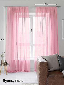 ВыбратьТюль 1 шт. Легкий, мягкий тюль из розовой вуали. Вуаль с матовой полупрозрачной текстурой. Отличается особым шиком, идеально подходит для создания воздушных штор. Придает ощущение свежести, хорошо пропускает воздух. Ткань неприхотлива в уходе, хорошо стирается без разрушения волокон с течением времени за счет высокого кручения нитей.