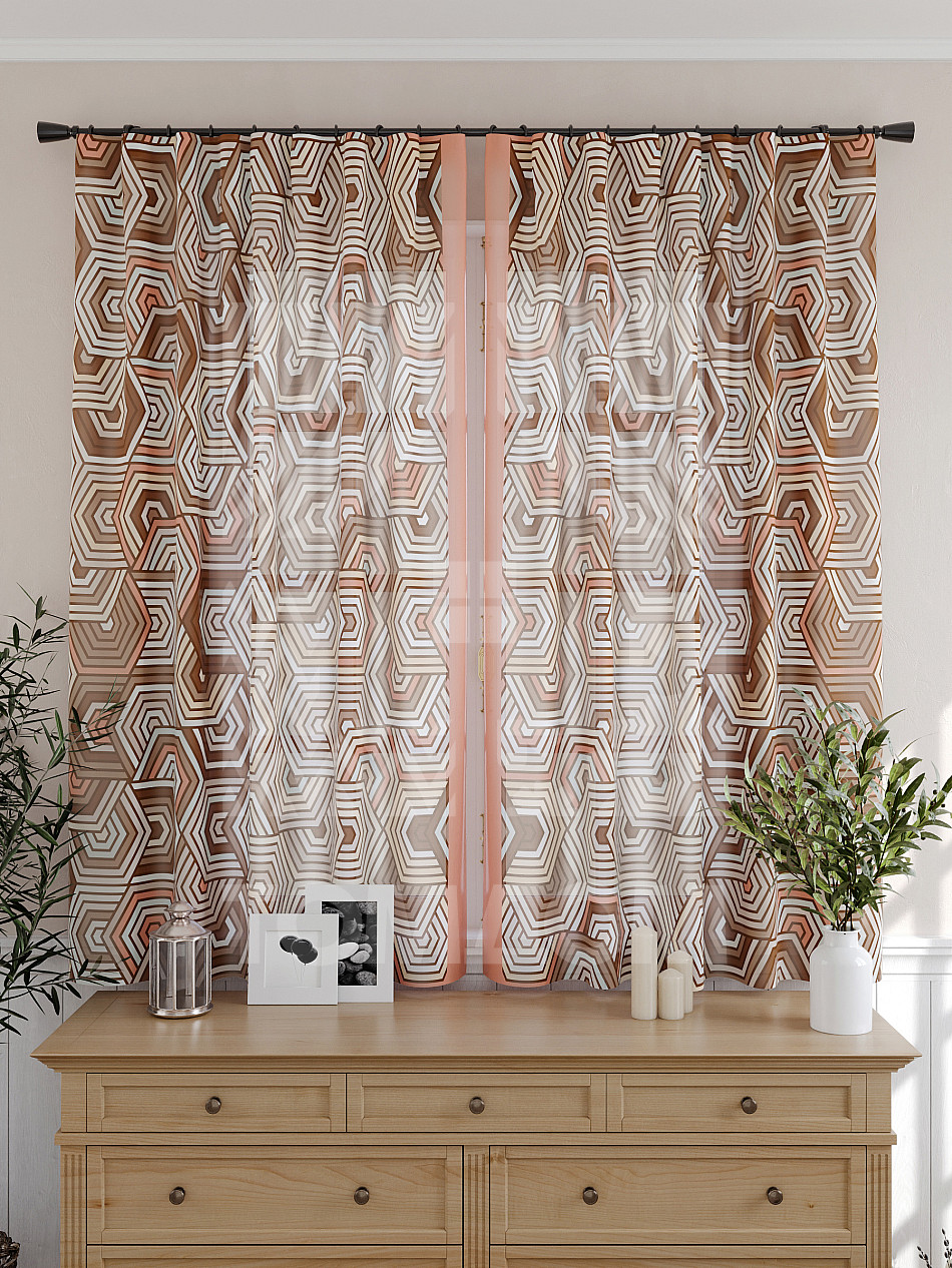 Тюль 2 шт. Подхват - доп.услуга. Легкая основа (вуаль) оформлена принтом. Вуаль с матовой полупрозрачной текстурой. Отличается особым шиком, идеально подходит для создания воздушных штор. Придает ощущение свежести, хорошо пропускает воздух. Ткань неприхотлива в уходе, хорошо стирается без разрушения волокон с течением времени за счет высокого кручения нитей.