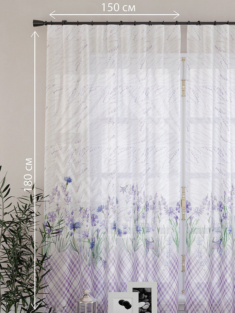 Ширина одного тюля без сборки 150 см, высота 180 см.