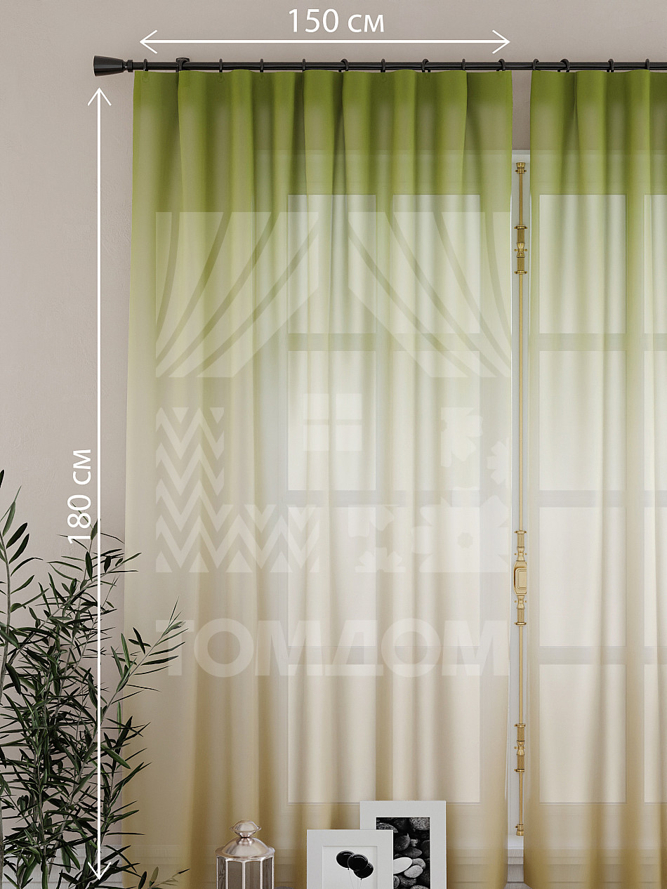 Ширина одного тюля без сборки 150 см, высота 180 см.