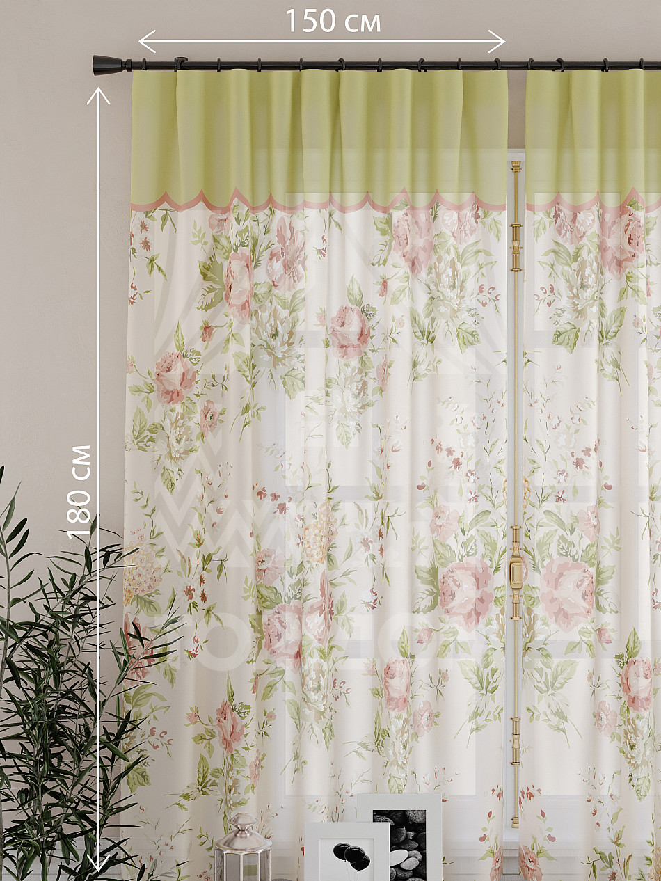 Ширина одного тюля без сборки 150 см, высота 180 см.