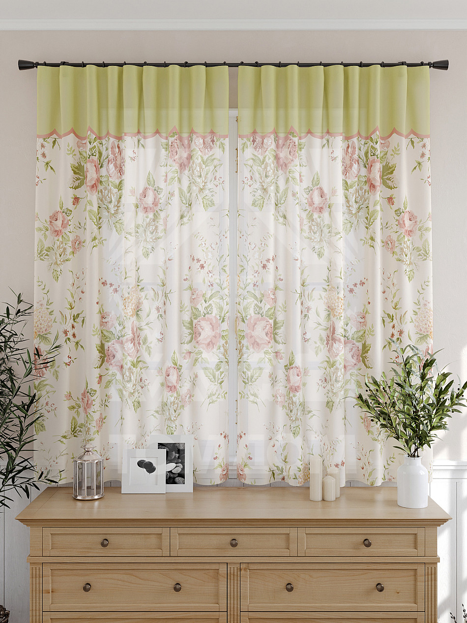 Тюль 2 шт. Подхват - доп.услуга. Легкая основа (вуаль) оформлена принтом. Вуаль с матовой полупрозрачной текстурой. Отличается особым шиком, идеально подходит для создания воздушных штор. Придает ощущение свежести, хорошо пропускает воздух. Ткань неприхотлива в уходе, хорошо стирается без разрушения волокон с течением времени за счет высокого кручения нитей.