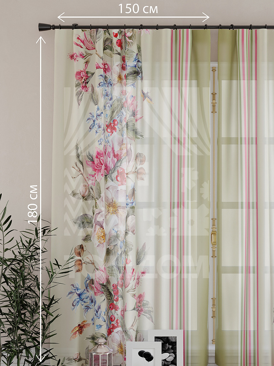 Тюль 2 шт. — 150х180см. ( Изменить высоту) Крепление: на петлях, кулиска Подробнее