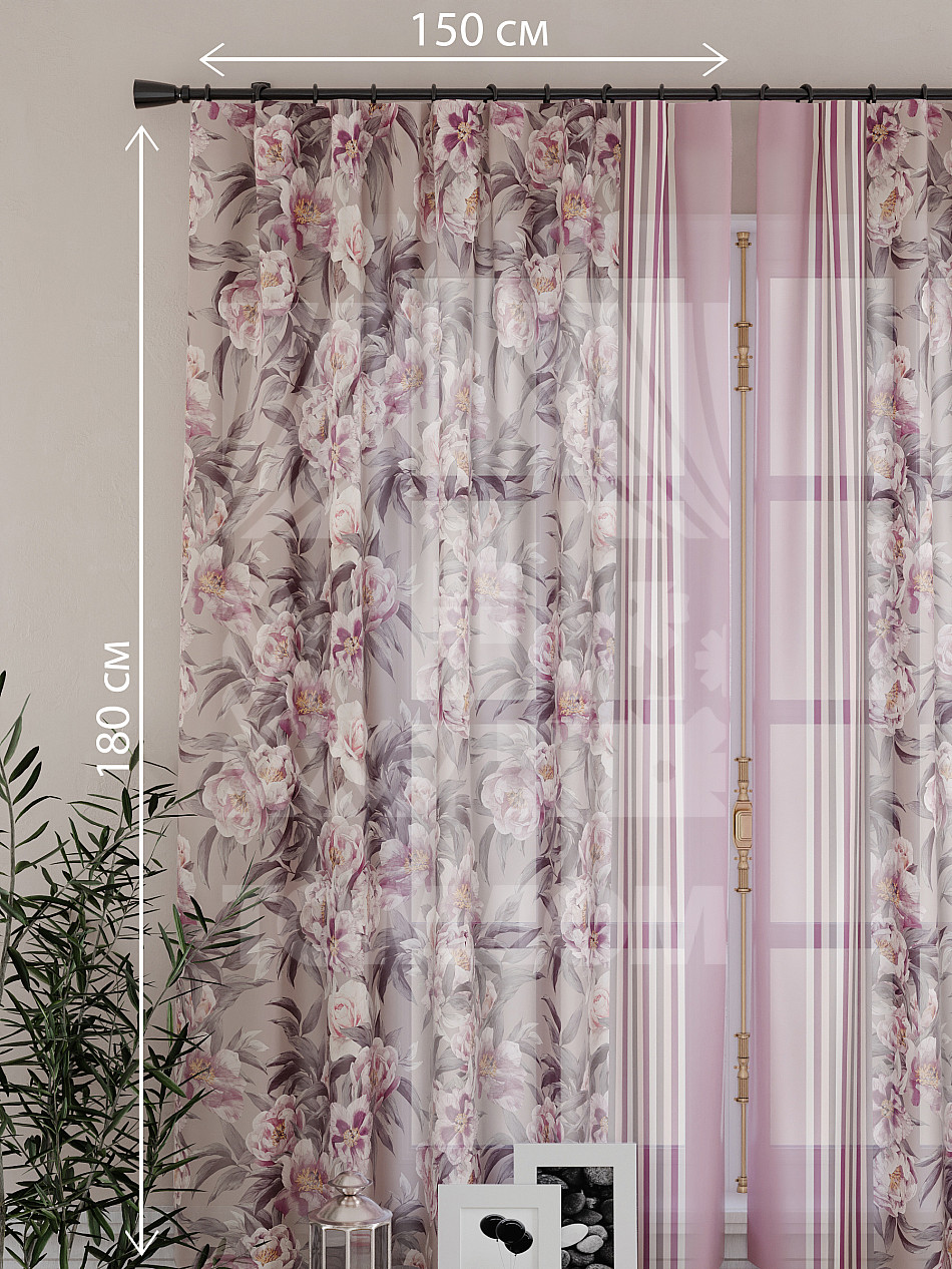 Ширина одного тюля без сборки 150 см, высота 180 см.