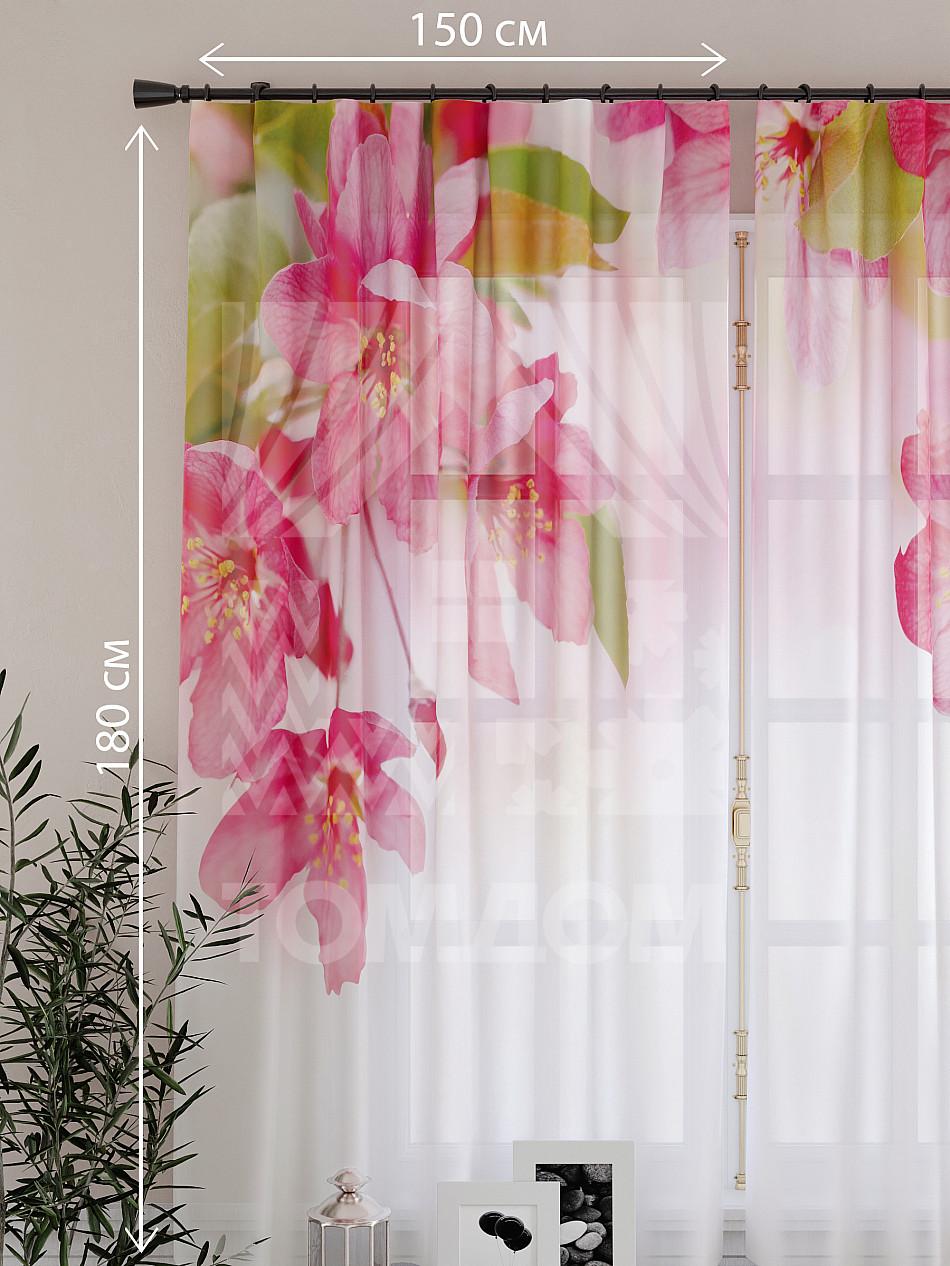 Ширина одного тюля без сборки 150 см, высота 180 см.