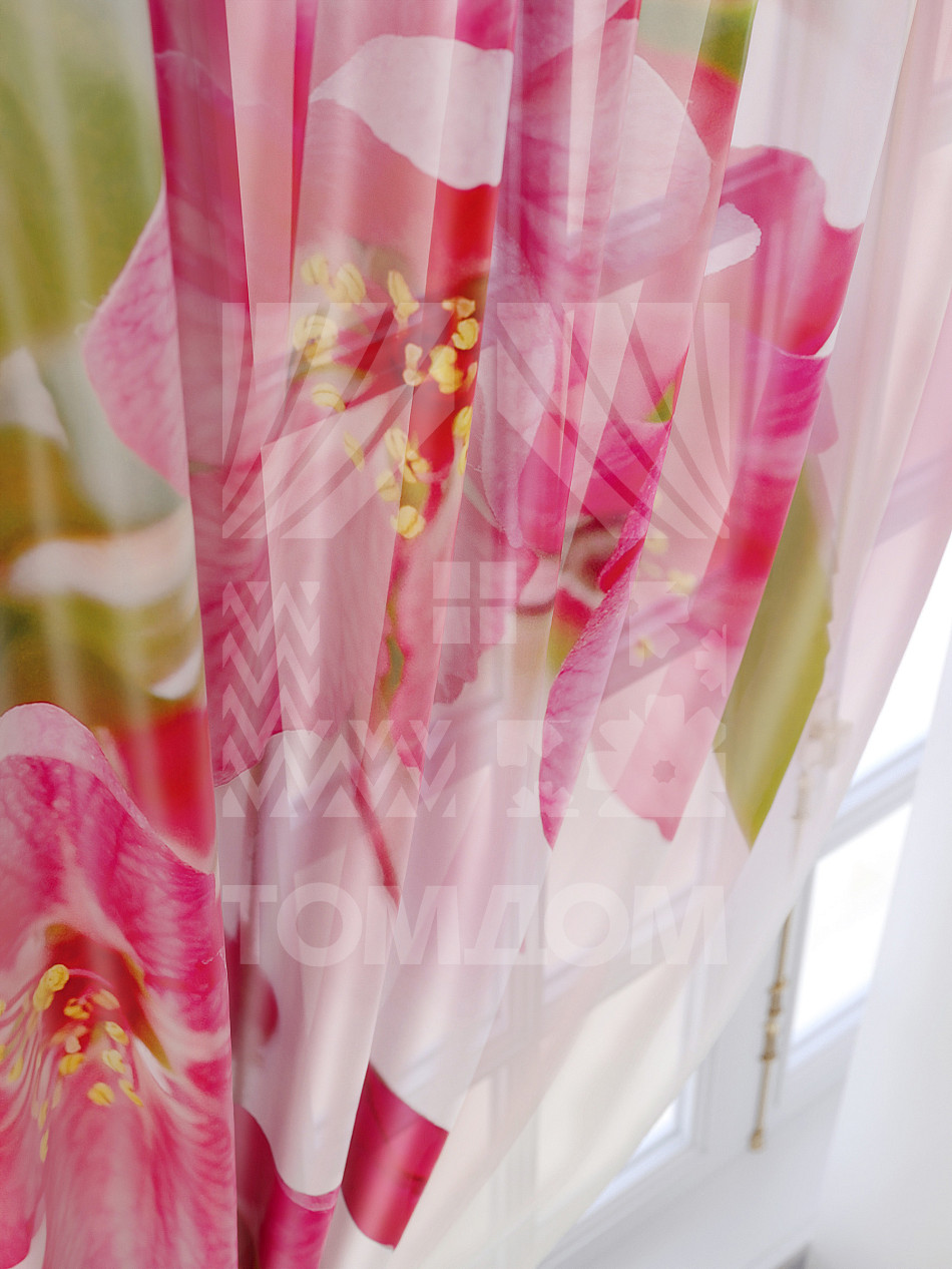 Тюль 2 шт. Подхват - доп.услуга. Легкая основа (вуаль) оформлена принтом. Вуаль с матовой полупрозрачной текстурой. Отличается особым шиком, идеально подходит для создания воздушных штор. Придает ощущение свежести, хорошо пропускает воздух. Ткань неприхотлива в уходе, хорошо стирается без разрушения волокон с течением времени за счет высокого кручения нитей.