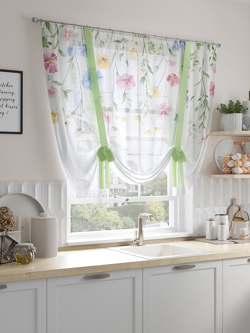 ВыбратьТюль 1 шт. Легкий, мягкий тюль из вуали оформлен фотопечатью, дополнен отделкой в виде декоративных завязок. Тюль имитирует римскую штору. Подъем и опускание осуществляется за счет декоративных лент. Вуаль с матовой полупрозрачной текстурой. Отличается особым шиком, идеально подходит для создания воздушных штор. Придает ощущение свежести, хорошо пропускает воздух. Ткань неприхотлива в уходе, хорошо стирается без разрушения волокон с течением времени за счет высокого кручения нитей.
