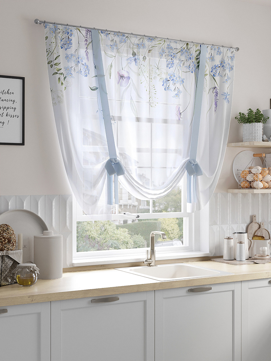 ВыбратьТюль 1 шт. Легкий, мягкий тюль из вуали оформлен фотопечатью, дополнен отделкой в виде декоративных завязок. Тюль имитирует римскую штору. Подъем и опускание осуществляется за счет декоративных лент. Вуаль с матовой полупрозрачной текстурой. Отличается особым шиком, идеально подходит для создания воздушных штор. Придает ощущение свежести, хорошо пропускает воздух. Ткань неприхотлива в уходе, хорошо стирается без разрушения волокон с течением времени за счет высокого кручения нитей.
