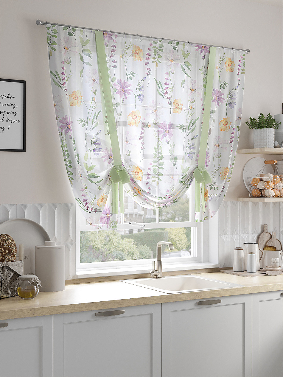 ВыбратьТюль 1 шт. Легкий, мягкий тюль из вуали оформлен фотопечатью, дополнен отделкой в виде декоративных завязок. Тюль имитирует римскую штору. Подъем и опускание осуществляется за счет декоративных лент. Вуаль с матовой полупрозрачной текстурой. Отличается особым шиком, идеально подходит для создания воздушных штор. Придает ощущение свежести, хорошо пропускает воздух. Ткань неприхотлива в уходе, хорошо стирается без разрушения волокон с течением времени за счет высокого кручения нитей.