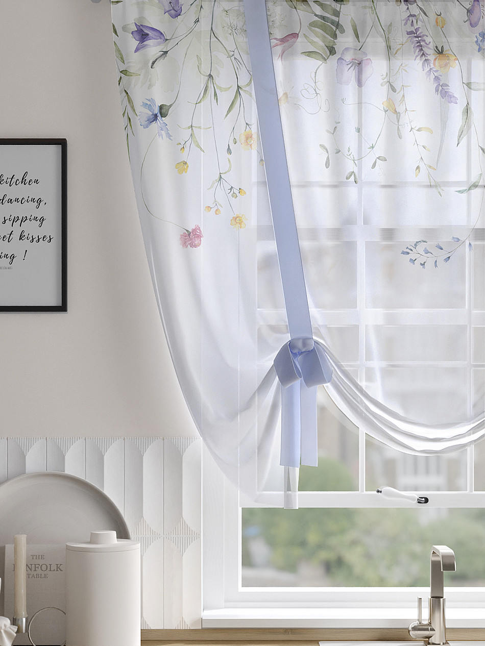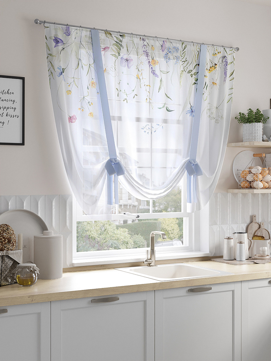 ВыбратьТюль 1 шт. Легкий, мягкий тюль из вуали оформлен фотопечатью, дополнен отделкой в виде декоративных завязок. Тюль имитирует римскую штору. Подъем и опускание осуществляется за счет декоративных лент. Вуаль с матовой полупрозрачной текстурой. Отличается особым шиком, идеально подходит для создания воздушных штор. Придает ощущение свежести, хорошо пропускает воздух. Ткань неприхотлива в уходе, хорошо стирается без разрушения волокон с течением времени за счет высокого кручения нитей.