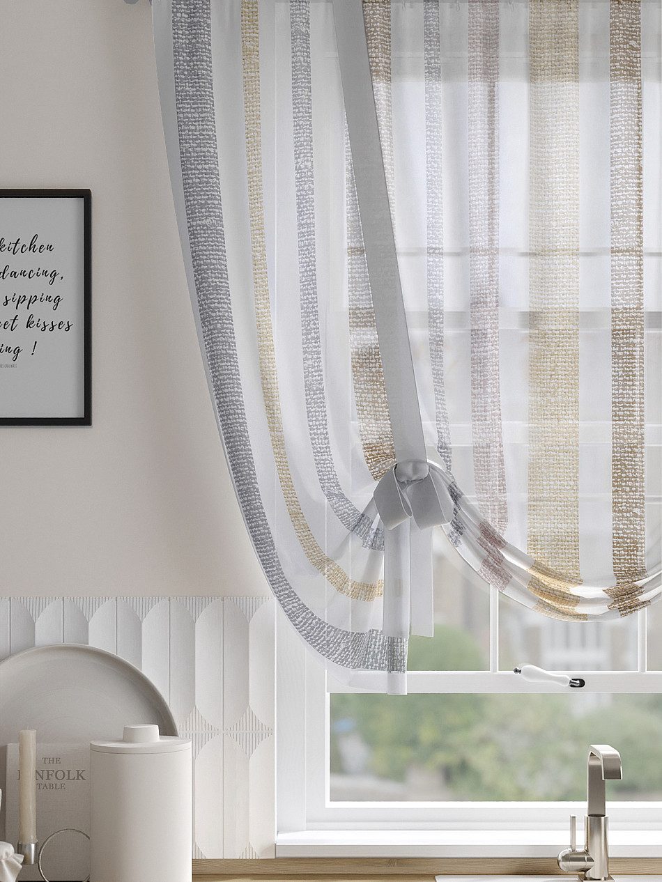 ВыбратьТюль 1 шт. Легкий, мягкий тюль из вуали оформлен фотопечатью, дополнен отделкой в виде декоративных завязок. Тюль имитирует римскую штору. Подъем и опускание осуществляется за счет декоративных лент. Вуаль с матовой полупрозрачной текстурой. Отличается особым шиком, идеально подходит для создания воздушных штор. Придает ощущение свежести, хорошо пропускает воздух. Ткань неприхотлива в уходе, хорошо стирается без разрушения волокон с течением времени за счет высокого кручения нитей.