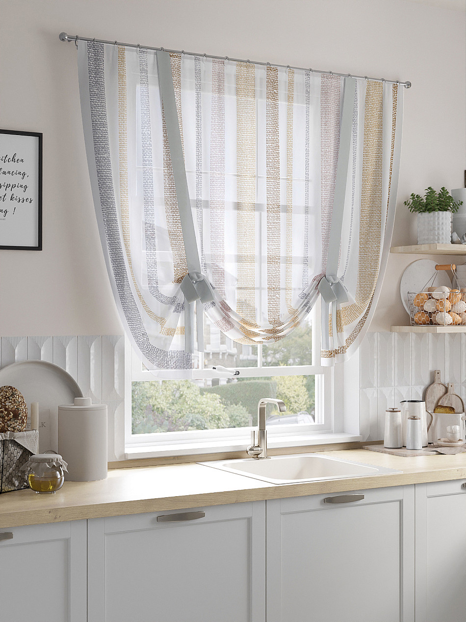 - Короткий тюль на кухню