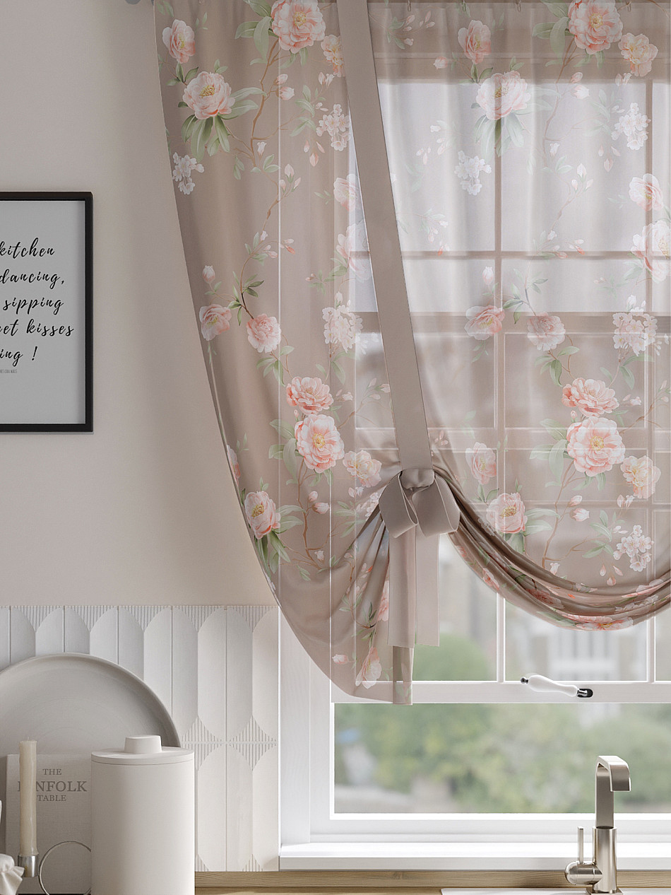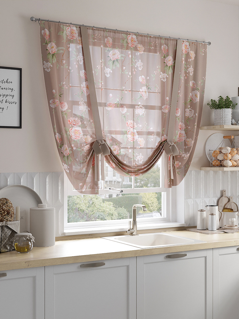 ВыбратьТюль 1 шт. Легкий, мягкий тюль из вуали оформлен фотопечатью, дополнен отделкой в виде декоративных завязок. Тюль имитирует римскую штору. Подъем и опускание осуществляется за счет декоративных лент. Вуаль с матовой полупрозрачной текстурой. Отличается особым шиком, идеально подходит для создания воздушных штор. Придает ощущение свежести, хорошо пропускает воздух. Ткань неприхотлива в уходе, хорошо стирается без разрушения волокон с течением времени за счет высокого кручения нитей.