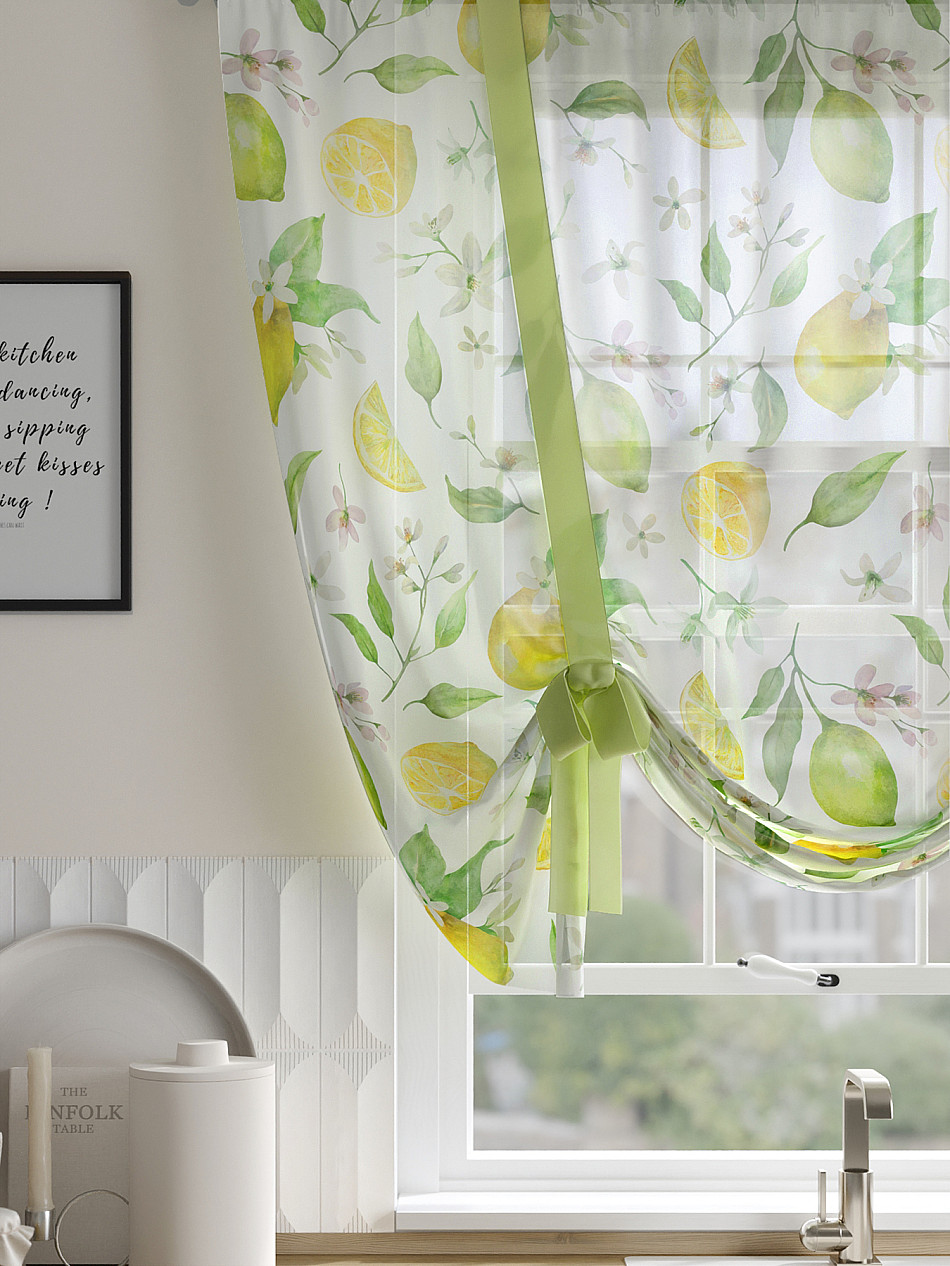 ВыбратьТюль 1 шт. Легкий, мягкий тюль из вуали оформлен фотопечатью, дополнен отделкой в виде декоративных завязок. Тюль имитирует римскую штору. Подъем и опускание осуществляется за счет декоративных лент. Вуаль с матовой полупрозрачной текстурой. Отличается особым шиком, идеально подходит для создания воздушных штор. Придает ощущение свежести, хорошо пропускает воздух. Ткань неприхотлива в уходе, хорошо стирается без разрушения волокон с течением времени за счет высокого кручения нитей.