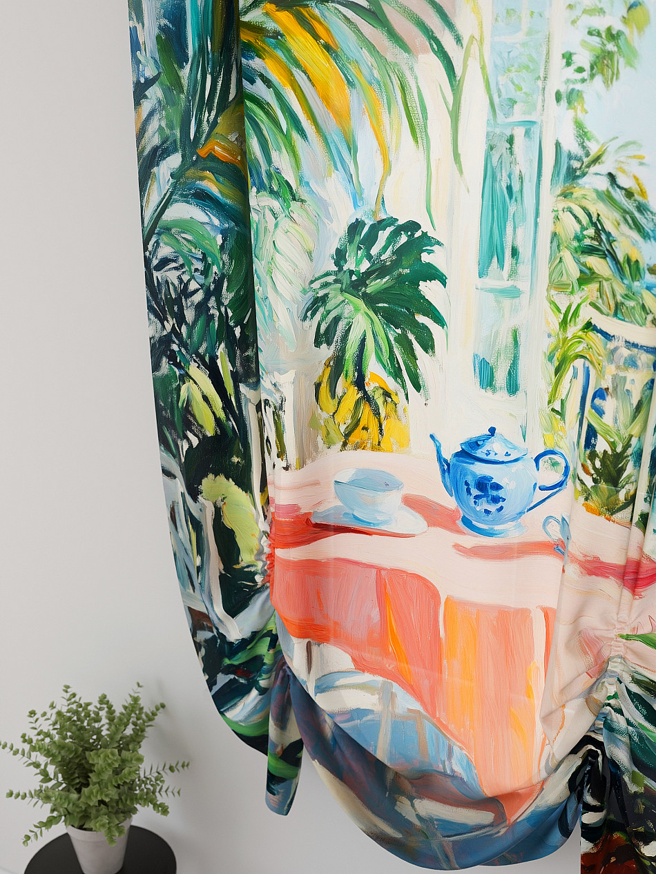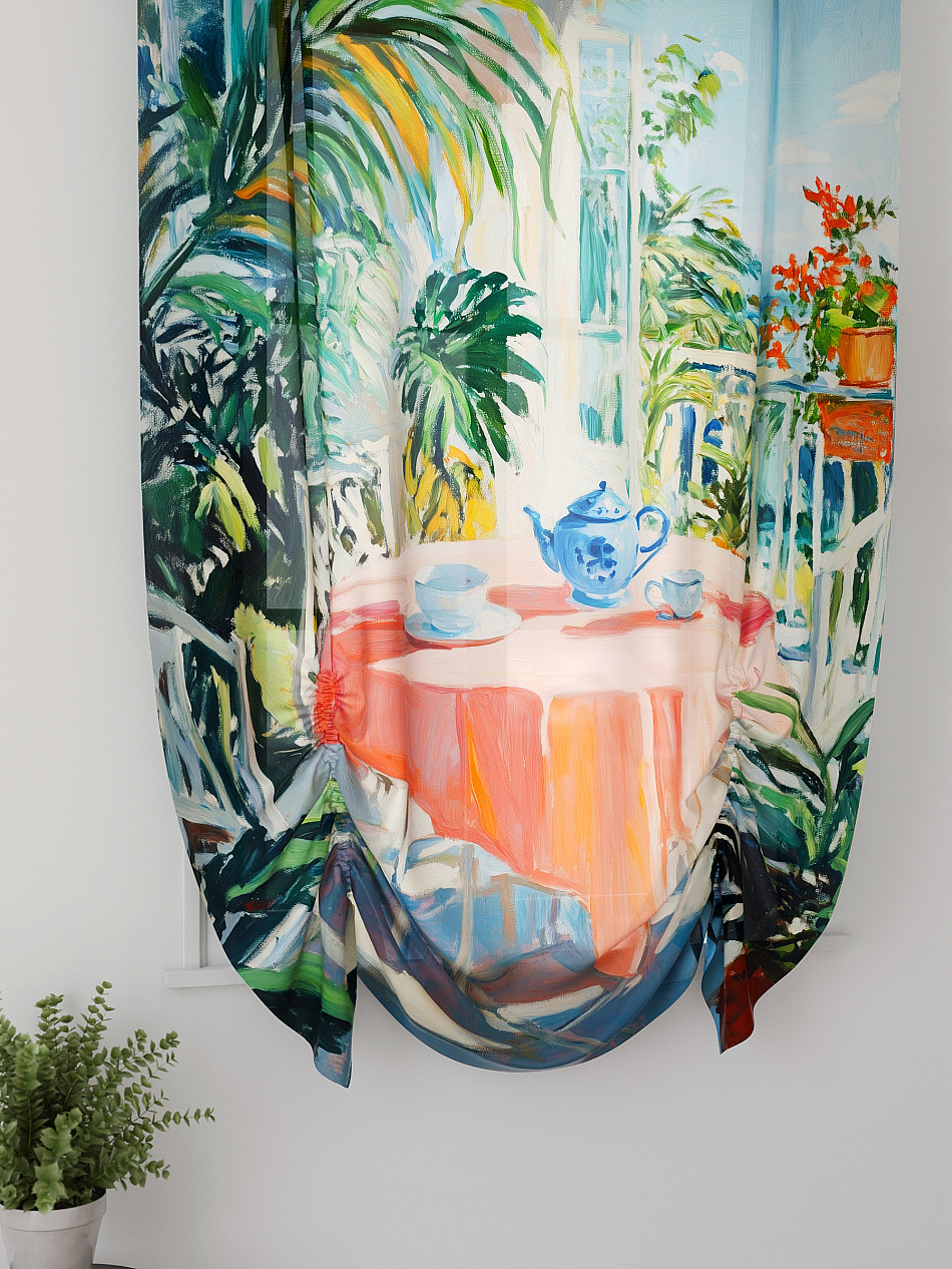 ВыбратьТюль 1 шт. Легкий, мягкий тюль из вуали оформлен фотопечатью, дополнен отделкой в виде декоративных завязок. Тюль имитирует австрийскую штору. Вуаль с матовой полупрозрачной текстурой. Отличается особым шиком, идеально подходит для создания воздушных штор. Придает ощущение свежести, хорошо пропускает воздух. Ткань неприхотлива в уходе, хорошо стирается без разрушения волокон с течением времени за счет высокого кручения нитей.