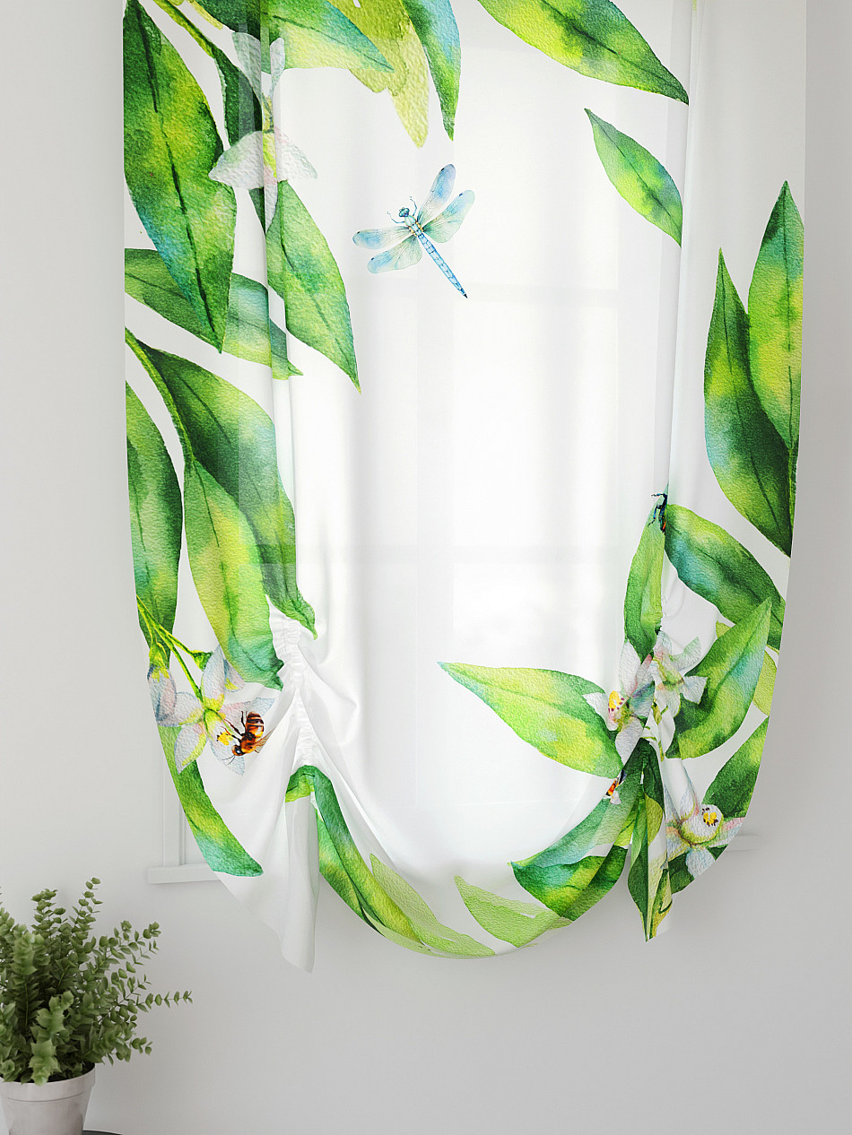 ВыбратьТюль 1 шт. Легкий, мягкий тюль из вуали оформлен фотопечатью, дополнен отделкой в виде декоративных завязок. Тюль имитирует австрийскую штору. Вуаль с матовой полупрозрачной текстурой. Отличается особым шиком, идеально подходит для создания воздушных штор. Придает ощущение свежести, хорошо пропускает воздух. Ткань неприхотлива в уходе, хорошо стирается без разрушения волокон с течением времени за счет высокого кручения нитей.
