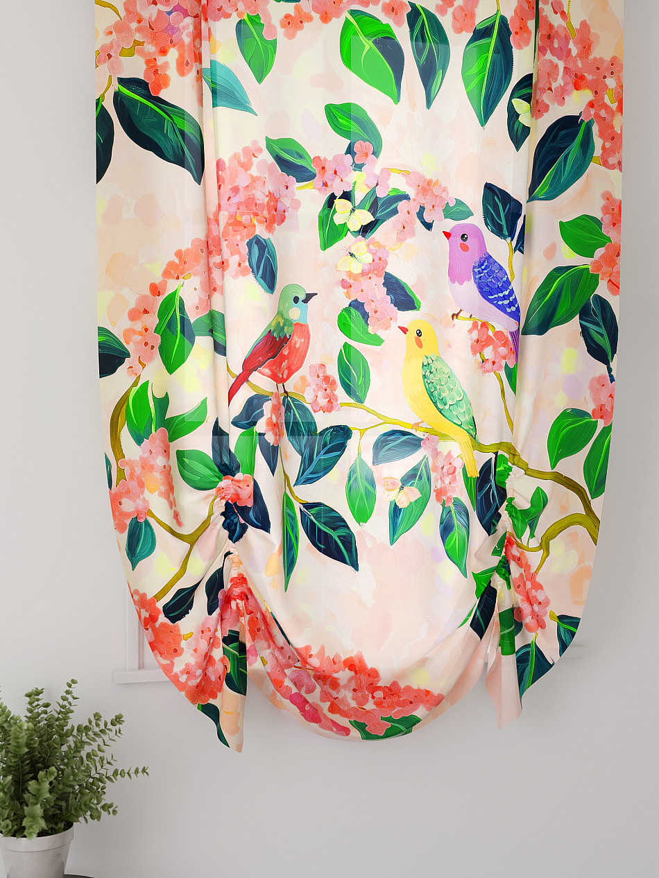 ВыбратьТюль 1 шт. Легкий, мягкий тюль из вуали оформлен фотопечатью, дополнен отделкой в виде декоративных завязок. Тюль имитирует австрийскую штору. Вуаль с матовой полупрозрачной текстурой. Отличается особым шиком, идеально подходит для создания воздушных штор. Придает ощущение свежести, хорошо пропускает воздух. Ткань неприхотлива в уходе, хорошо стирается без разрушения волокон с течением времени за счет высокого кручения нитей.