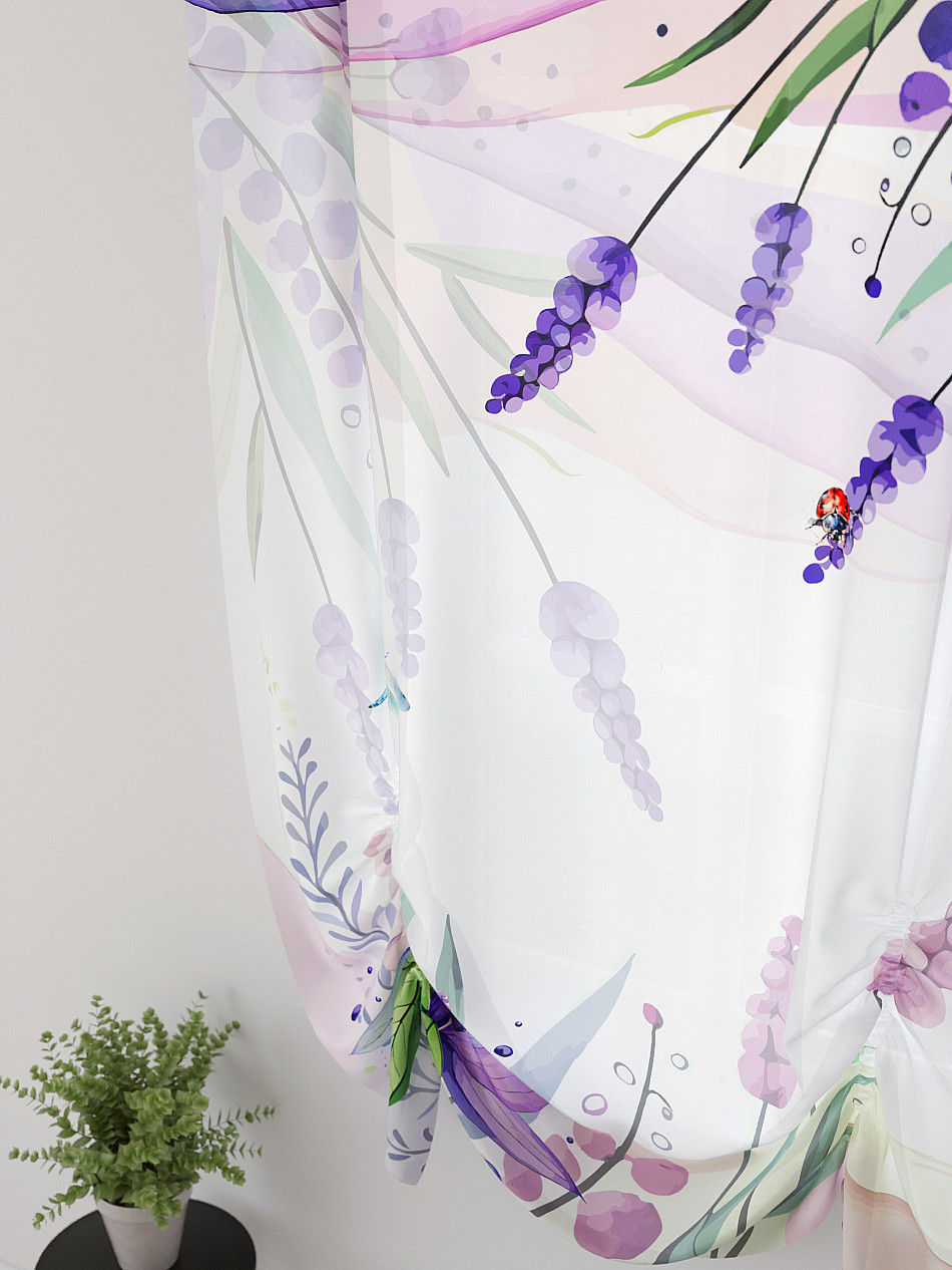 ВыбратьТюль 1 шт. Легкий, мягкий тюль из вуали оформлен фотопечатью, дополнен отделкой в виде декоративных завязок. Тюль имитирует австрийскую штору. Вуаль с матовой полупрозрачной текстурой. Отличается особым шиком, идеально подходит для создания воздушных штор. Придает ощущение свежести, хорошо пропускает воздух. Ткань неприхотлива в уходе, хорошо стирается без разрушения волокон с течением времени за счет высокого кручения нитей.