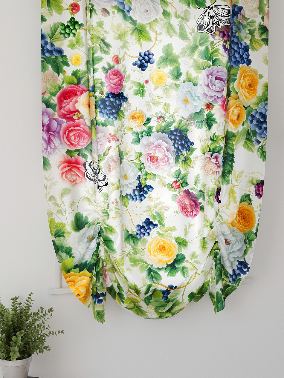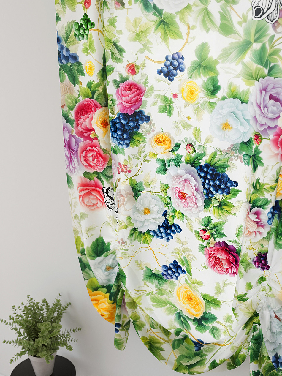 ВыбратьТюль 1 шт. Легкий, мягкий тюль из вуали оформлен фотопечатью, дополнен отделкой в виде декоративных завязок. Тюль имитирует австрийскую штору. Вуаль с матовой полупрозрачной текстурой. Отличается особым шиком, идеально подходит для создания воздушных штор. Придает ощущение свежести, хорошо пропускает воздух. Ткань неприхотлива в уходе, хорошо стирается без разрушения волокон с течением времени за счет высокого кручения нитей.