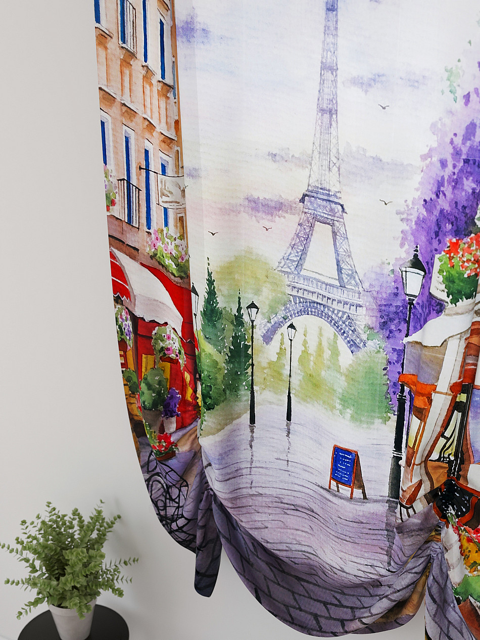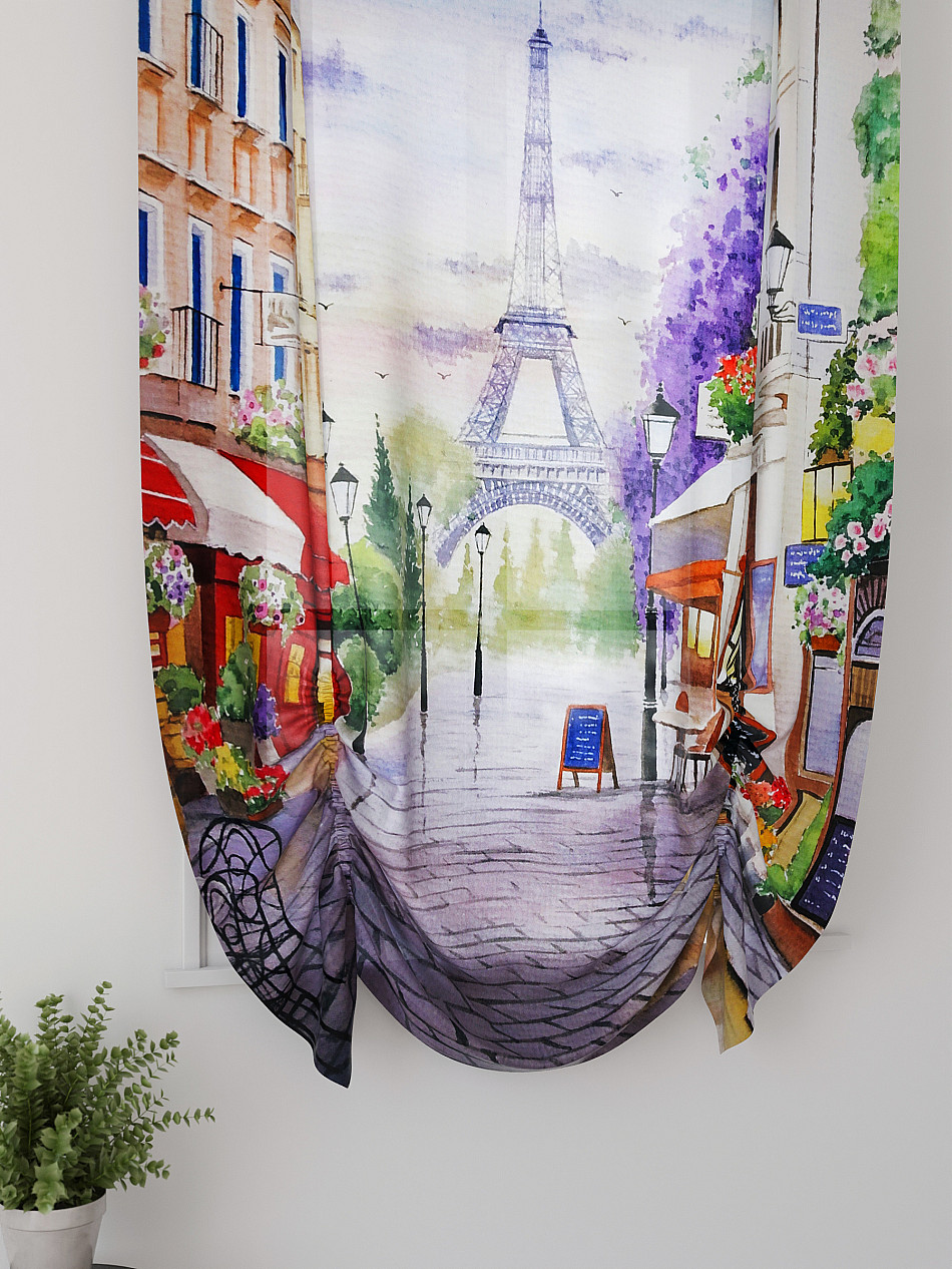 ВыбратьТюль 1 шт. Легкий, мягкий тюль из вуали оформлен фотопечатью, дополнен отделкой в виде декоративных завязок. Тюль имитирует австрийскую штору. Вуаль с матовой полупрозрачной текстурой. Отличается особым шиком, идеально подходит для создания воздушных штор. Придает ощущение свежести, хорошо пропускает воздух. Ткань неприхотлива в уходе, хорошо стирается без разрушения волокон с течением времени за счет высокого кручения нитей.
