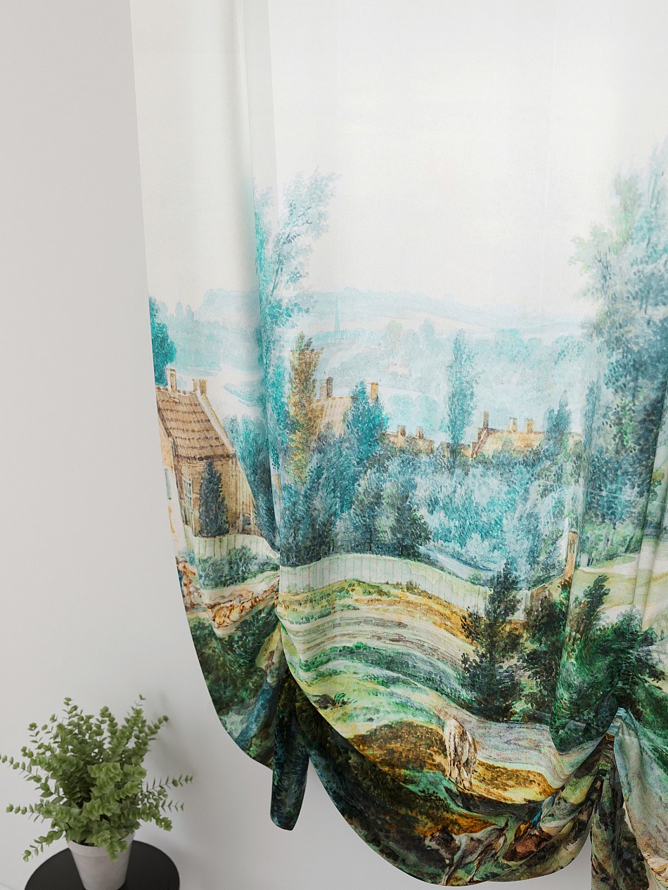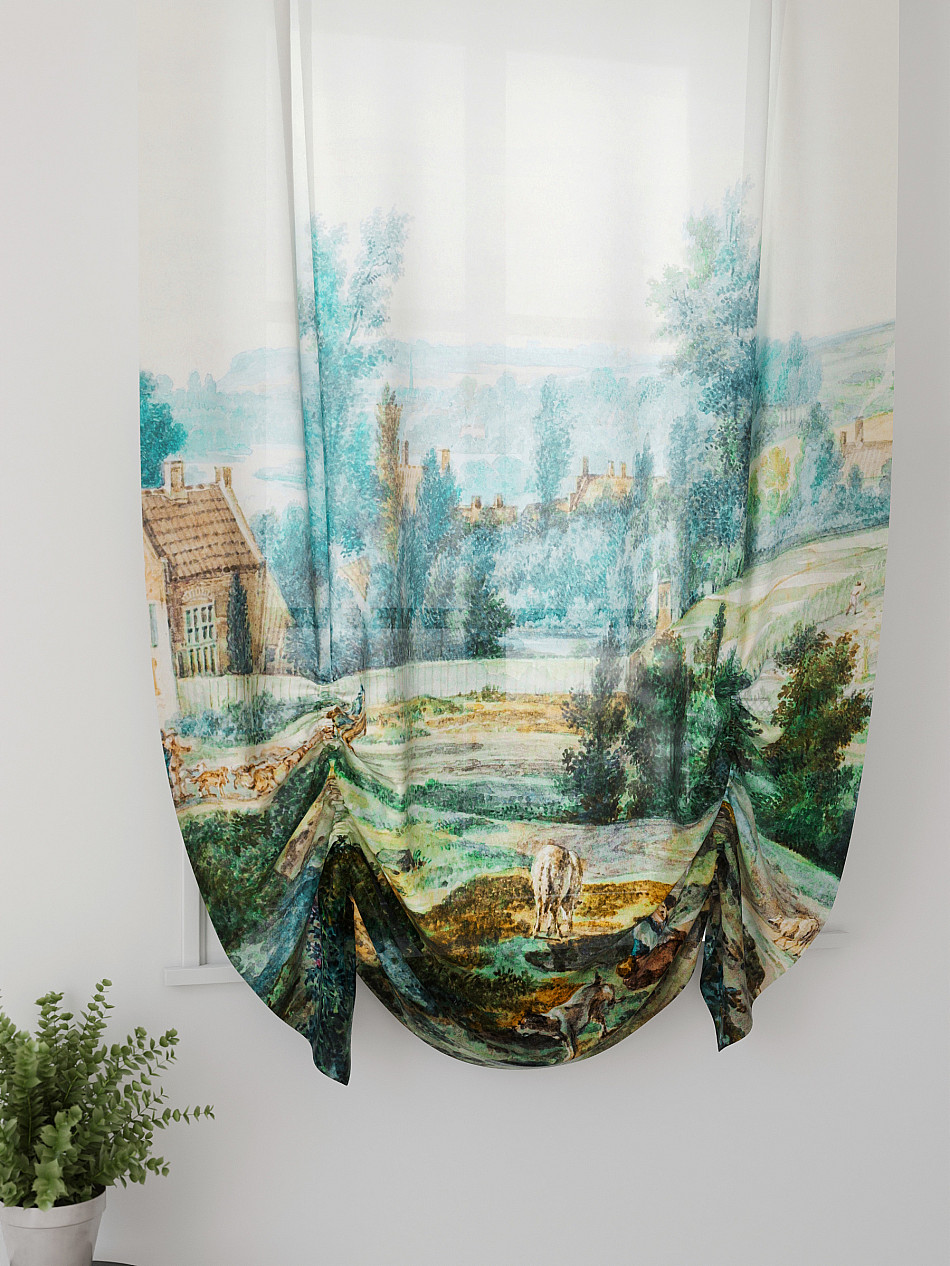 ВыбратьТюль 1 шт. Легкий, мягкий тюль из вуали оформлен фотопечатью, дополнен отделкой в виде декоративных завязок. Тюль имитирует австрийскую штору. Вуаль с матовой полупрозрачной текстурой. Отличается особым шиком, идеально подходит для создания воздушных штор. Придает ощущение свежести, хорошо пропускает воздух. Ткань неприхотлива в уходе, хорошо стирается без разрушения волокон с течением времени за счет высокого кручения нитей.
